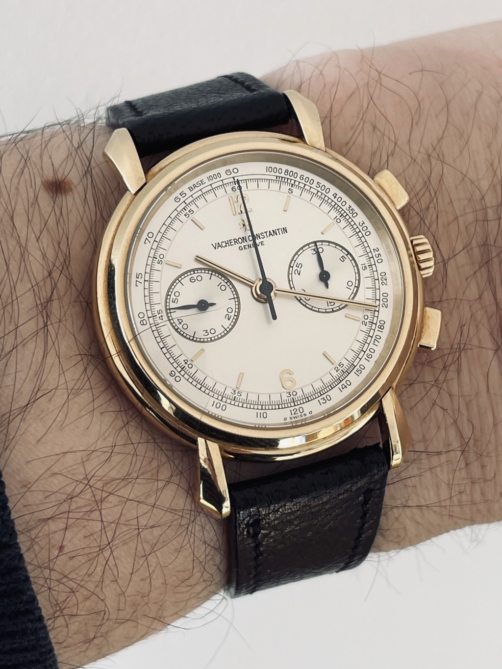 Vacheron Les Historiques Chrono 47101 37mm Or jaune première série (1991), avec boîte d’origine mais pas papiers, boucle ardillon 18k d’origine et bracelet d’origine (+ atelier Romane sur les photos)