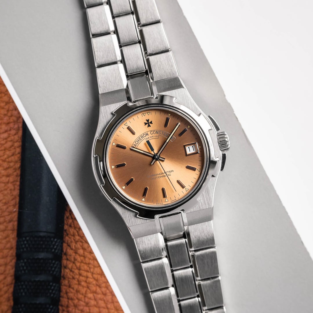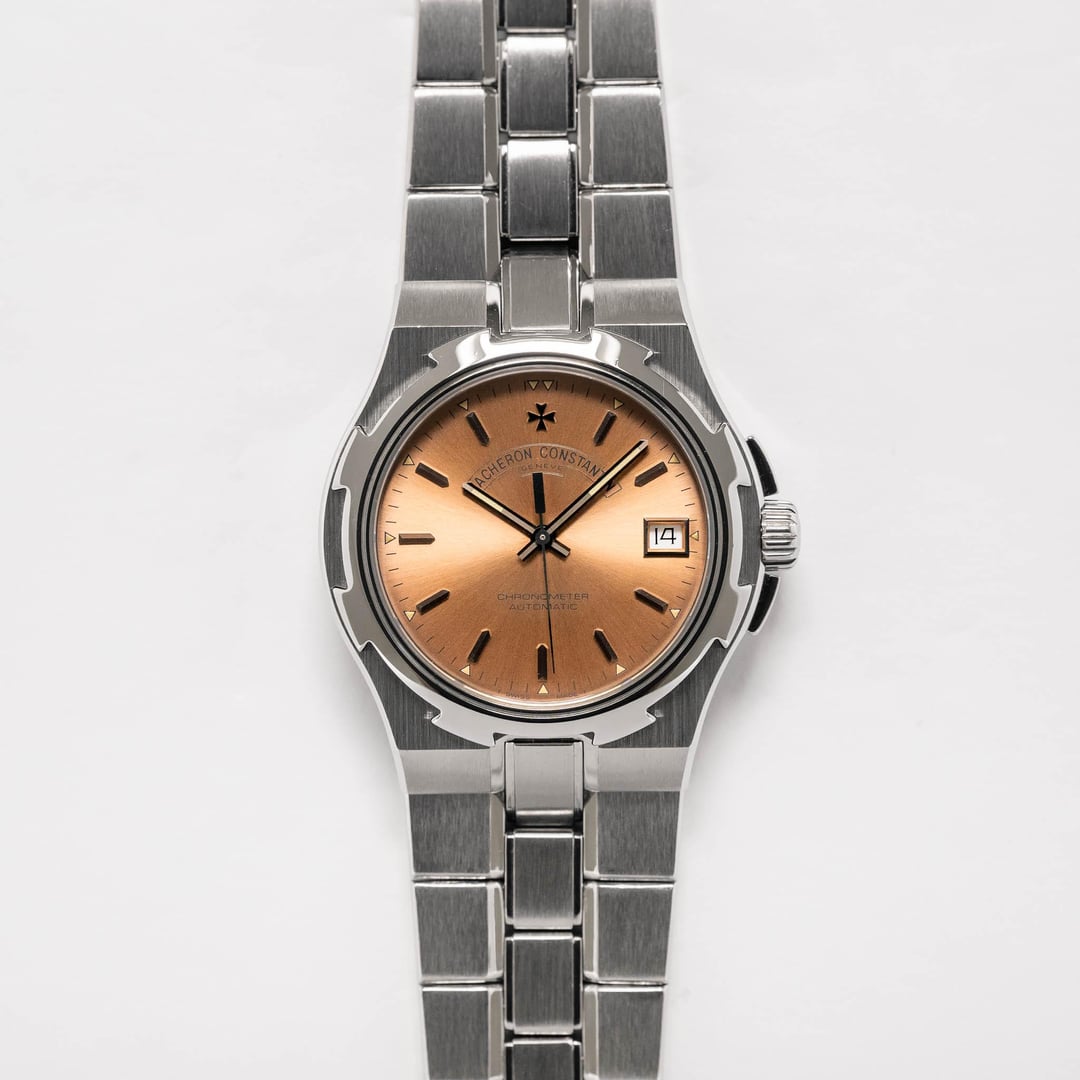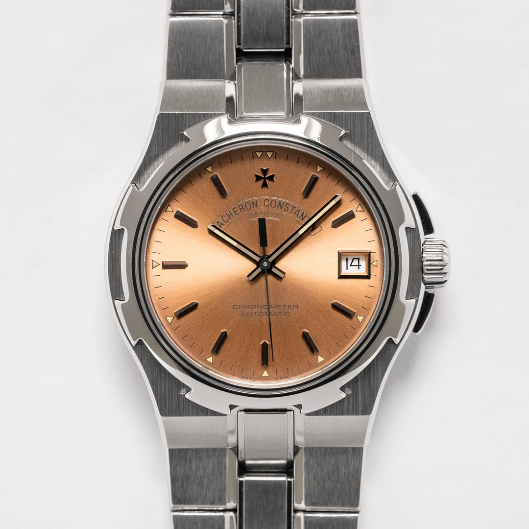 Offered here is an extremely rare first generation Vacheron Overseas with a wonderfully preserved "jumbo" case, a desirable salmon dial, and an upgraded butterfly clasp. **SPECIFICATIONS** **Brand:** Vacheron Constantin **Model:** Overseas **Reference:** 42040/423A-8461 **Year:** 1990s **Case Number:** 692050 **Case Material:** Stainless steel **Diameter:** 37 mm **Lug Width:** 24 mm **Thickness:** 8.5 mm **Lug-to-Lug:** 42.6 mm **Dial:** Salmon **Lume:** Tritium **Crystal:** Sapphire **Movement:** Automatic **Caliber:** VC 1310 **Bracelet/Strap:** Vacheron Constantin stainless steel bracelet **Max Wrist Size:** 7.5 in (16 links) **CONDITION & PERFORMANCE** **Case:** The steel case shows only light wear in the form of a few hairlines, faint scuffs, and tiny nicks. The overall impression is very clean. The case angles remain superbly defined, with crisp chamfers and clean edges. The condition of the caseback is consistent with the rest of the watch. The model and serial number engravings remain sharp and legible. **Dial, Hands, & Crystal:** The salmon dial and polished hands are in immaculate condition with no notable imperfections. The tritium plots across the dial and hands are intact and show no degradation or cracking. When exposed to UV light, the tritium briefly glows and fades away. The sapphire crystal is squeaky clean and scratch-free. **Bracelet/Strap:** The Vacheron Constantin bracelet is in fantastic overall condition with little-to-no stretch and hardly any marks outside of a couple faint signs of wear. The clasp itself is clean with no major marks. The Maltese Cross engraving remains crisp and detailed. **Timing & Functions:** The watch has been measured with a timegrapher at six different positions. While resting face up, the rate is +16s/d. All functions including the crown winding, time setting, and quickset date are working as expected. **Service History:** Unknown. **WHAT'S INCLUDED** \- Vacheron Constantin Overseas on a stainless steel bracelet. Timestamp: [https://imgur.com/a/t8BKQbd](https://imgur.com/a/t8BKQbd) **PRICE & DELIVERY** I'm asking **$26,700** net to me via bank transfer, Zelle, or PayPal + fees. The price includes expedited shipping via FedEx within the U.S. and internationally. No trades. Feel free to reach out if you have any questions!