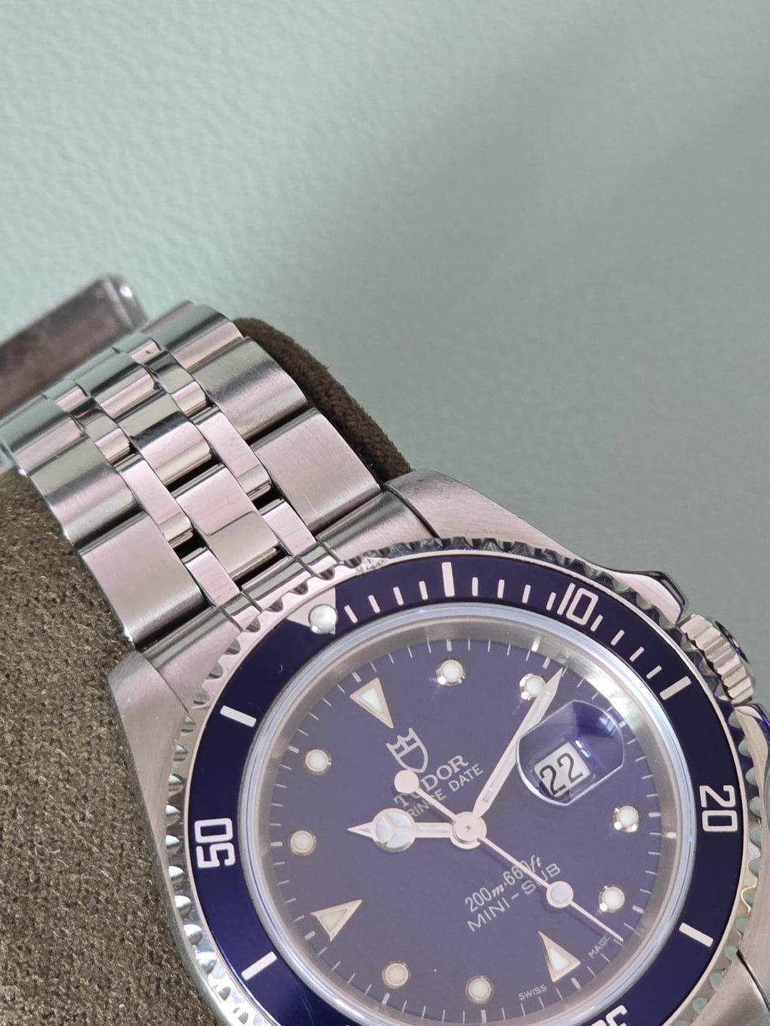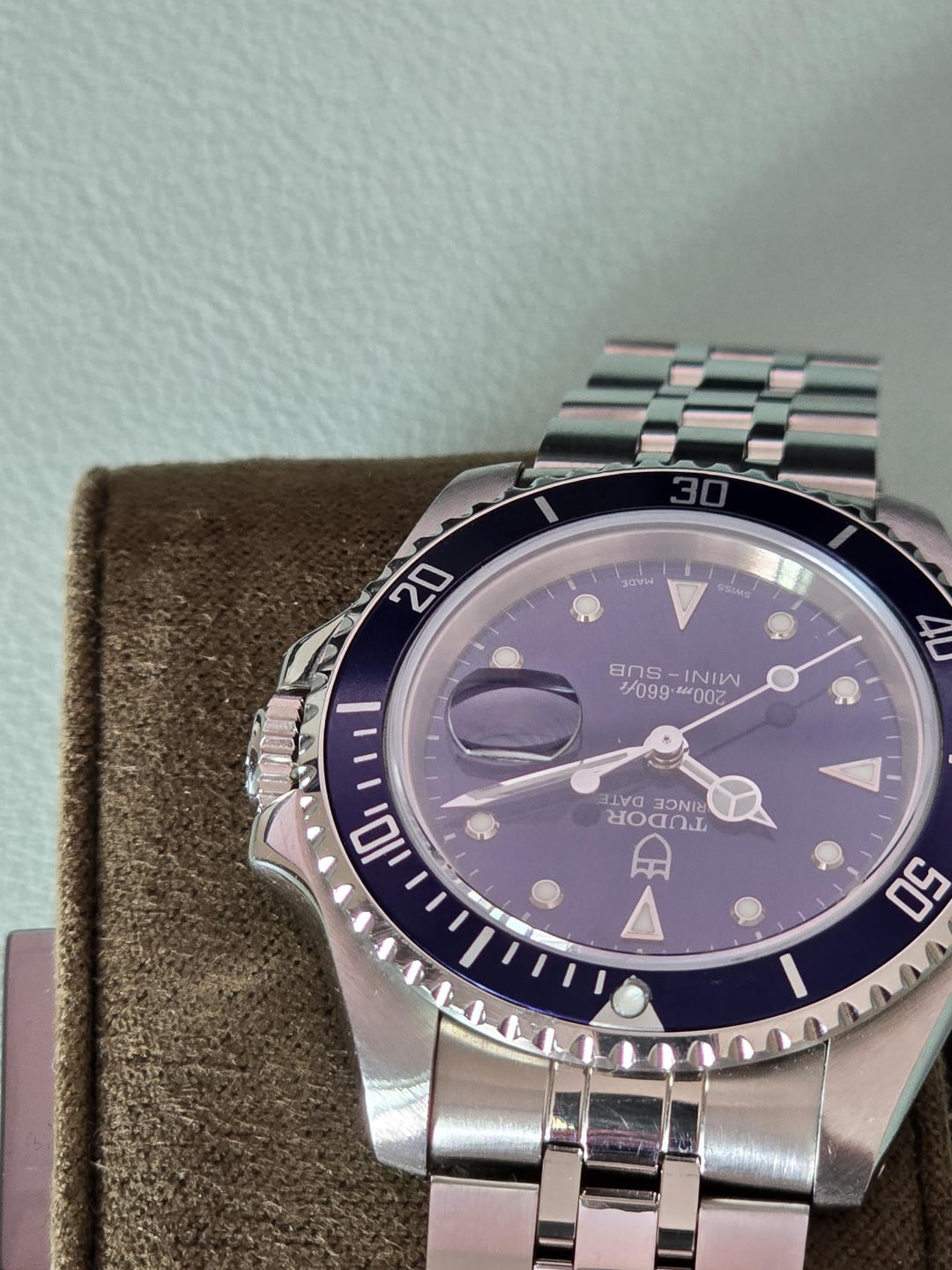 What's going on watch Exchange today I got a beautiful tutor blue mini sub. Condition is I think very well for its age the only noticeable signs are a Nick around the bezels Edge at the 1:00 position and the Pearl itself in the bezel is not cracked but whatever Sapphire coating is over it has been chipped. Bracelet has a minor amount of desk rash and the case has light hair scratches on the sides. The watch is from the Bucherer Boutique in Switzerland, and comes with everything you see including an eBay authenticity card as I purchase the watch off eBay. The watch is keeping excellent time within cosc standards at what have I observed to be plus three to plus four seconds a day while wearing. The watch didn't get a lot of rest time for me in my rotation and I've made a few other big purchases since acquiring it as it was more for the collection since I am a collector but my watch box is full this one no longer has a slot hence why the sale and I hope it goes to a excellent home where it will be enjoyed Preferred payment method is Zell and I will FedEx it insured. Watch is listed at $2,500. Thank you for checking out my watch!