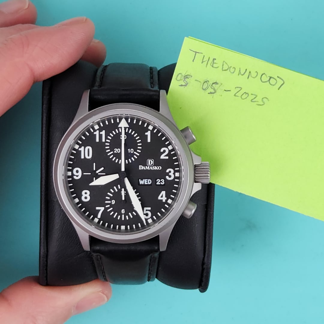 ![[WTS] Damasko DC56 black dial, Valjoux automatic 7750 chronograph movement. Ice hardened steel, antimagnetic, sapphire crystal, Damakso leather strap with lots of wear, aftermarket leather strap, and box. 2](https://cdn-cf.watchpatrol.net/600x600/img/full/f56ca021ea3d39faf29c0874501377fd1452c867.jpg)