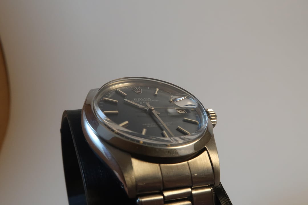 | Rolex Oyster Perpetual Date 1500 Grey Gilts Dial 34mm Cal. 1570 Vintage Rare shopwatch (493) |