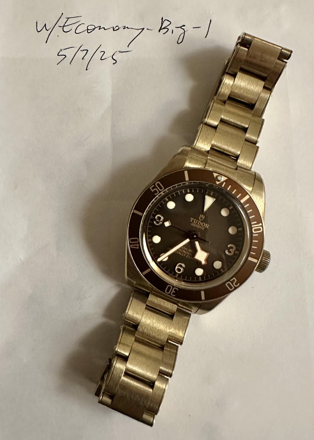 Tudor Black Bay 58 Bronze Boutique Edition (Ref: M79012M-0001), purchased from an authorized dealer in October 2023. I’m the original owner, and this watch comes with the full set: box, papers, warranty card, and the unworn OEM NATO strap. I’m selling to free up funds for other watches in my collection, and I’m excited to pass this beauty on to another enthusiast! **Details:** * **Model**: Tudor Black Bay 58 Bronze * **Reference**: M79012M-0001 * **Purchase Date**: October 2023 from an AD * **Condition**: Excellent, no visible scratches (likely due to the brushed finish and bronze material). Worn occasionally on weekends, so it’s seen light use. The bronze Tudor uses develops a subtle, even patina, which adds character. I’ve found the patina easy to reverse to a like-new shine using cotton rounds and Wenol paste, if desired. * **Included**: Full set with inner/outer boxes, warranty booklet, warranty card (dated Oct 2023), hang tag, and the unworn Tudor brown NATO strap. The bronze bracelet with T-Fit clasp is in great shape. * **Movement**: Tudor in-house MT5400, COSC-certified, 70-hour power reserve, running perfectly within specs. * **Case Size**: 39mm, perfect for a wide range of wrist sizes. * **Water Resistance**: 200m **Price**: $3300 shipped overnight CONUS via FedEx or USPS. Payment via Zelle, wire, or crypto (USDC, BTC, ETH, SOL). No trades, please, as I’m raising funds for another purchase.