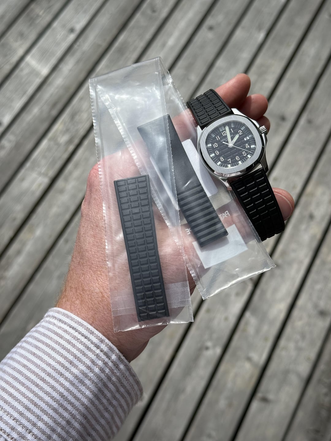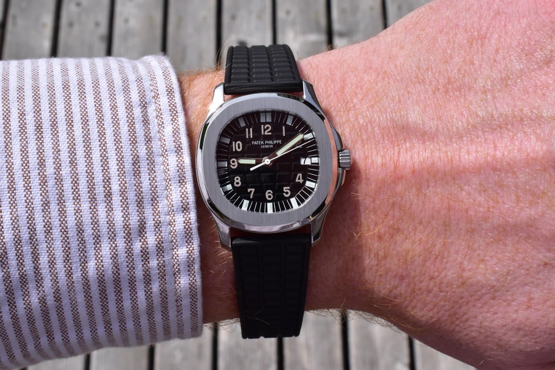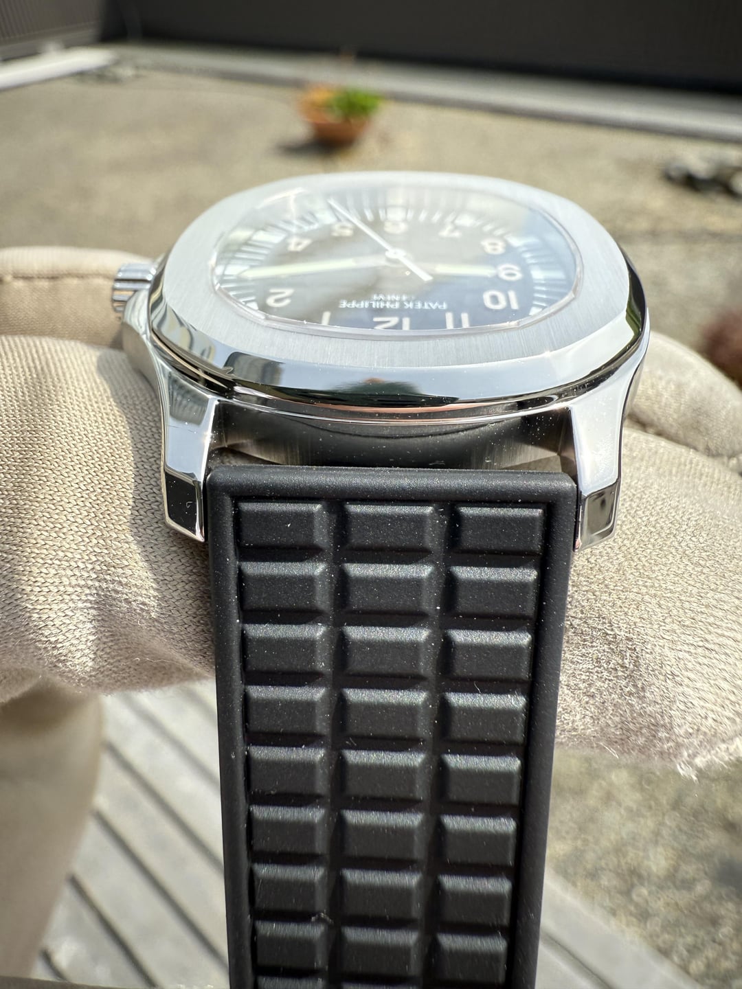 | Patek Philippe Aquanaut 5064 in Stainless Steel on a black rubber strap graysvault (874) |