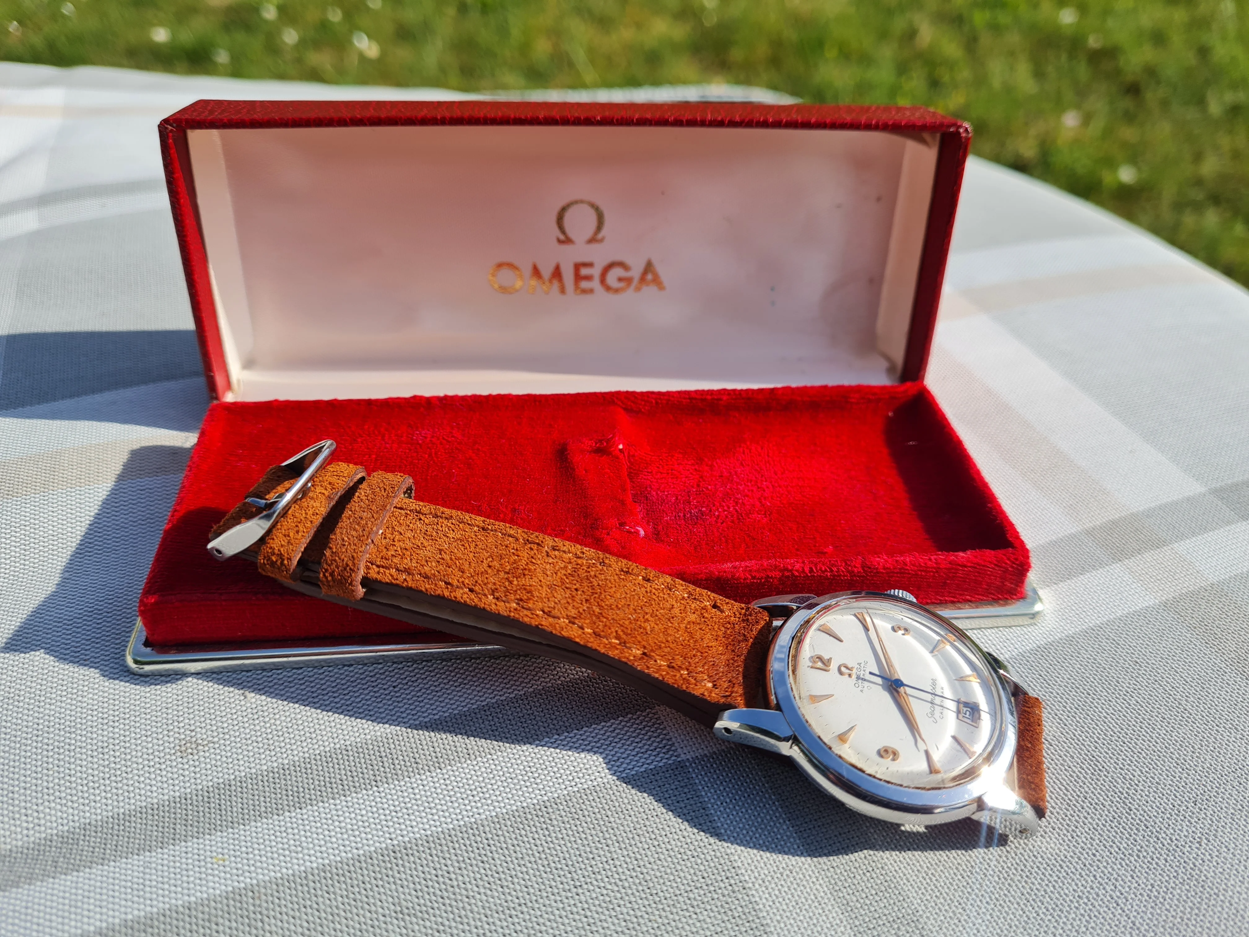 The watch comes with like new leather bracelet and Omega box (from 60s?).