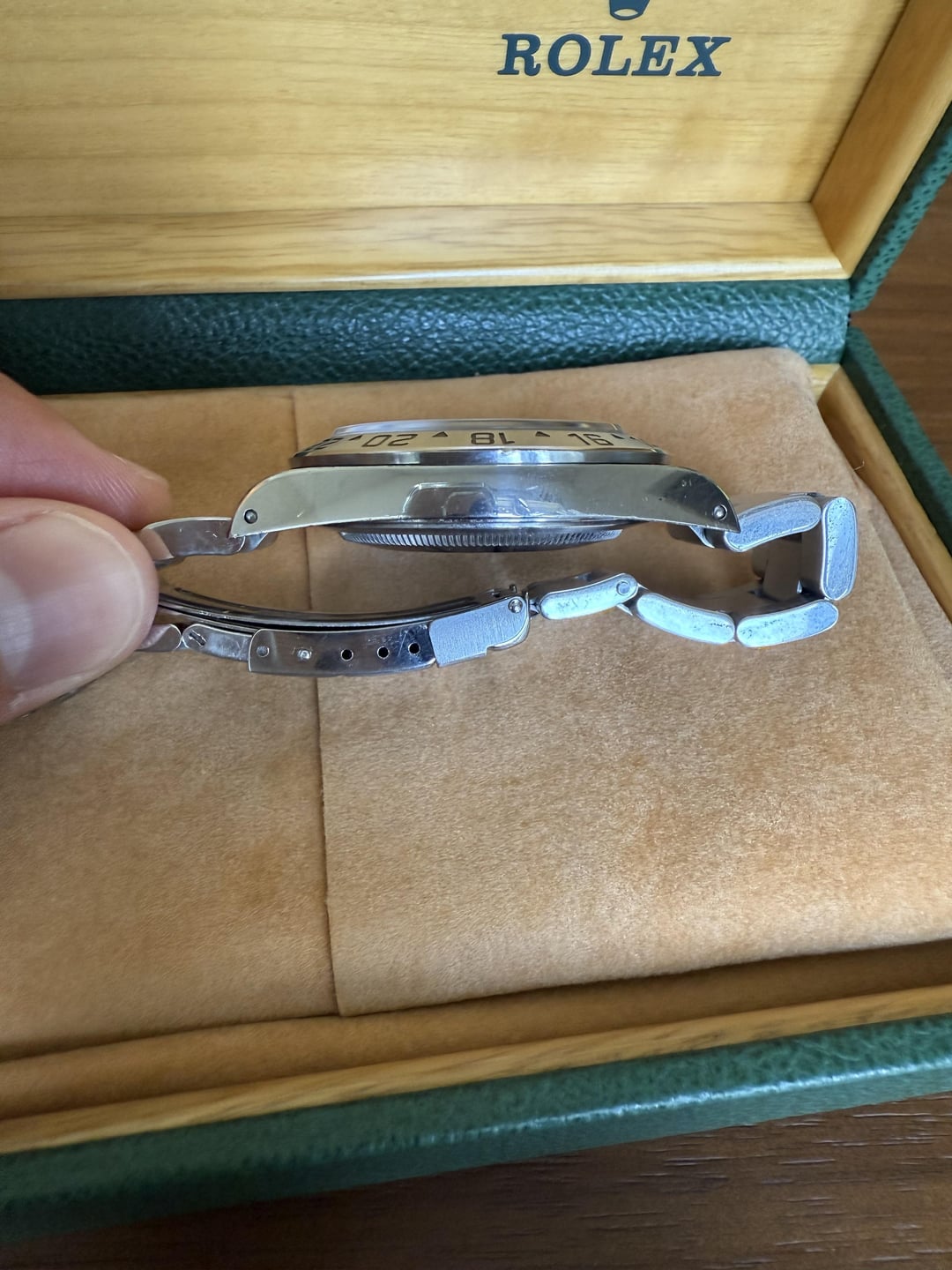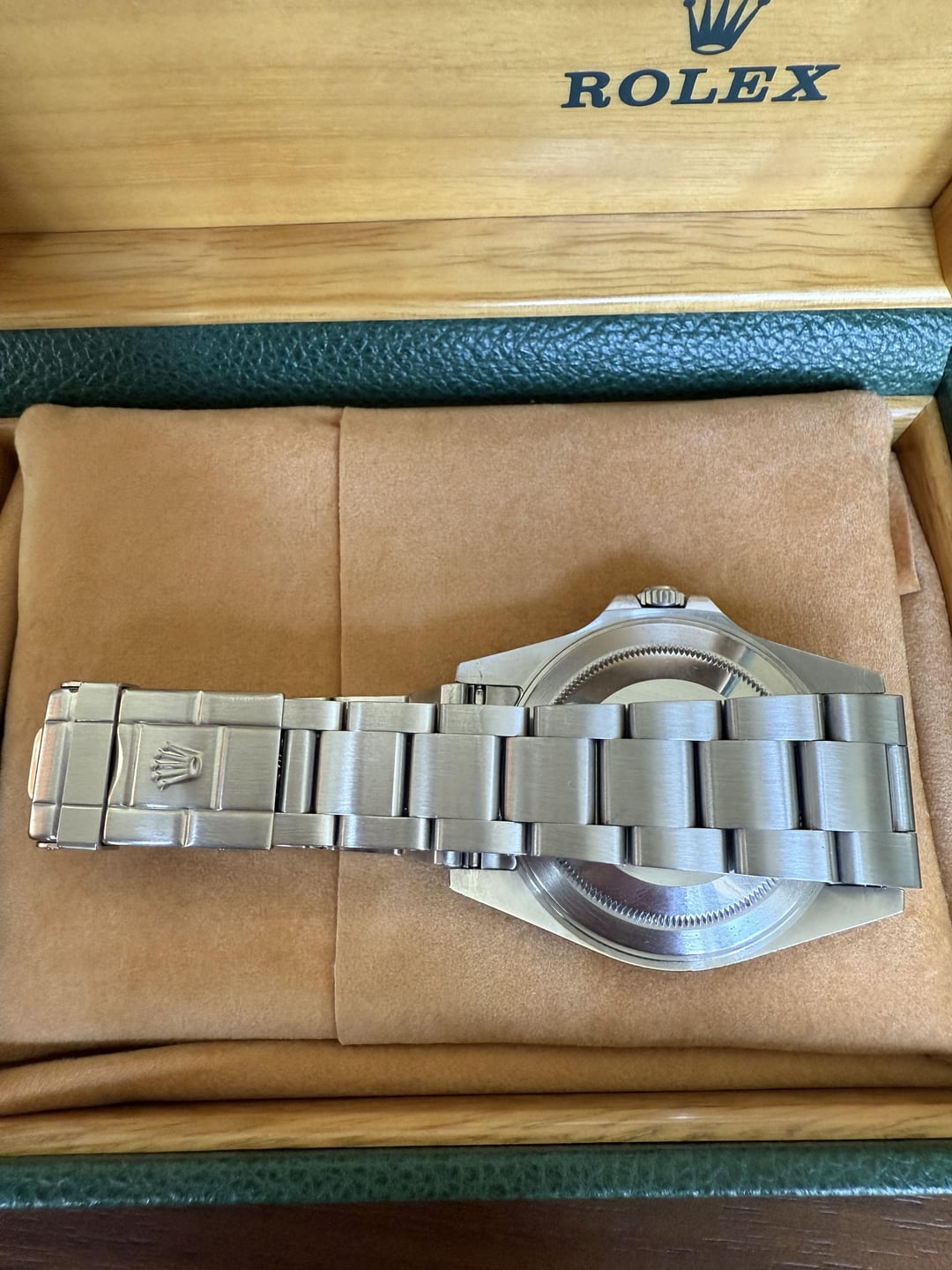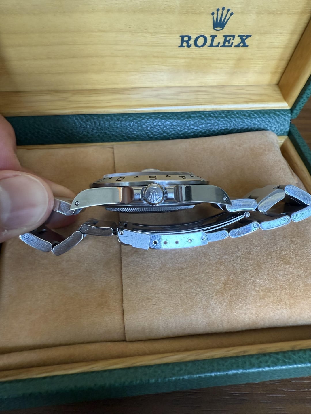 For sale is a 2000 model Rolex Explorer 2 Polar dial. This watch is in fantastic shape, and is a full set with box, papers, booklets, etc. May be missing a link or two. Watch keeps fantastic time. Has a very tiny knick on the bezel at the “18” mark, shown in photos. A few hairline scratches on the case sides as well, shown in photos. Overall an absolute beautiful example, you’d be hard pressed to find a cleaner 16570 than this. This one was lucky enough to be graced with Superluminova, as well as the classic Rolex lug holes. Looking for $7900 shipped, in the Lower 48 states. Wire preferred. No references on Reddit, but I do have many purchases and sales on Watchuseek over the years. Thanks for looking, let me know if you have questions!