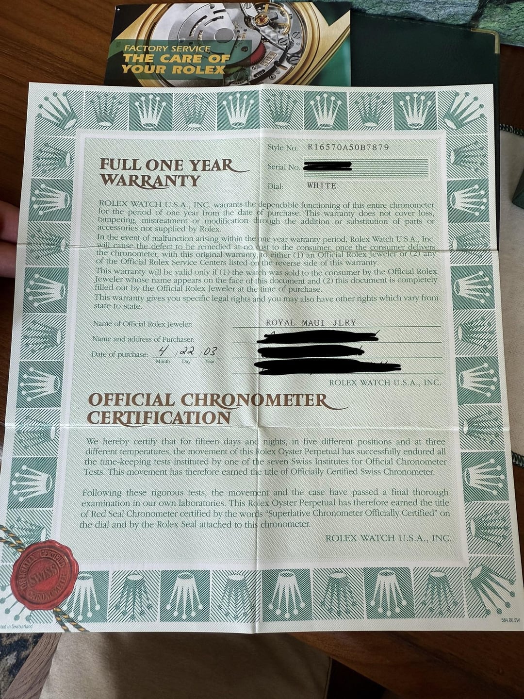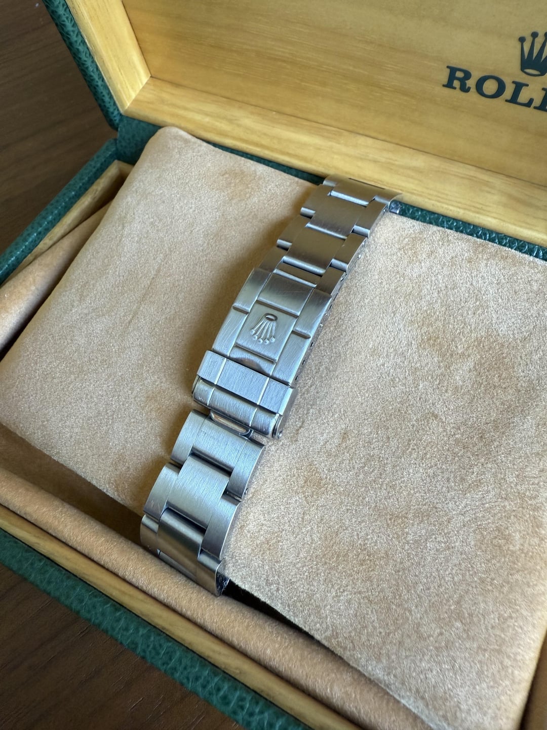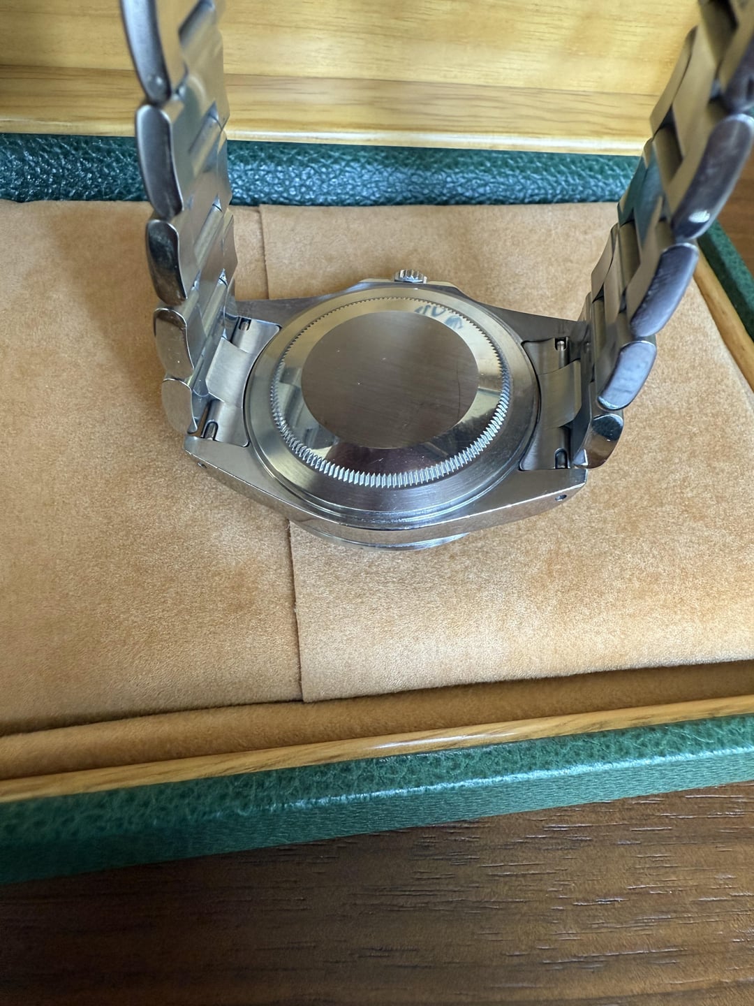 For sale is a 2000 model Rolex Explorer 2 Polar dial. This watch is in fantastic shape, and is a full set with box, papers, booklets, etc. May be missing a link or two. Watch keeps fantastic time. Has a very tiny knick on the bezel at the “18” mark, shown in photos. A few hairline scratches on the case sides as well, shown in photos. Overall an absolute beautiful example, you’d be hard pressed to find a cleaner 16570 than this. This one was lucky enough to be graced with Superluminova, as well as the classic Rolex lug holes. Looking for $7900 shipped, in the Lower 48 states. Wire preferred. No references on Reddit, but I do have many purchases and sales on Watchuseek over the years. Thanks for looking, let me know if you have questions!