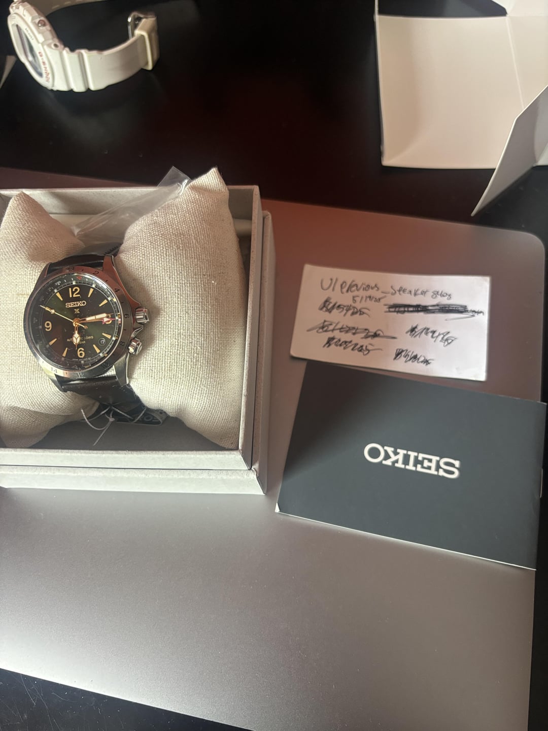 [WTS] Seiko Prospex Alpinist GMT SBEJ005 – $799 • Condition: Like New ; includes full set with box and papers. • Details: The Seiko Prospex Alpinist GMT SBEJ005 is a Japan Domestic Model (JDM) that blends rugged mountaineering heritage with modern functionality. It features a 39.5mm stainless steel case with Seiko’s Diamond Shield coating, providing enhanced scratch resistance. The watch is powered by the in-house Caliber 6R54 automatic movement, offering a 72-hour power reserve. It includes a GMT function for tracking a second time zone, a curved sapphire crystal with anti-reflective coating, and is water-resistant to 200 meters.  • Payment: PayPal FF, Wire, Venmo, Cashapp • Location: East Lansing, MI • Shipping: CONUS shipping included; international shipping available at buyer’s expense • Trades: Not accepted at this time • Financing available Let me know if you need further information or have any questions!