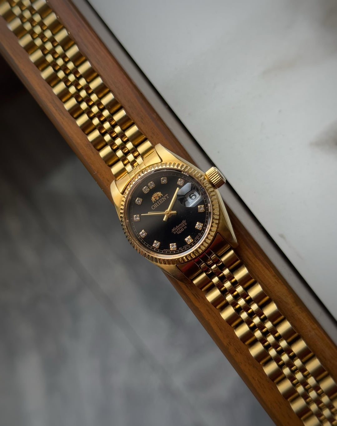 [WTS] Orient Diamond Dial Lady NR16N0B - Great Condition, With Box (Serviced) only for 225$ Shipped 🚢 (Via FedEx) Up for sale is a Orient diamond dial ladies reference NR16N0B featuring a stainless steel/gold plated case with a case size of 25mm. Condition of the dial is super clean with a beautiful black colour and diamond markers. Sapphire crystal. Comes on its original Jubilee bracelet with full links that would fit upto easy 7.5 inch wrist. Few links of the bracelet shows signs of wear from the inside. Automatic movement working perfectly fine with no malfunctions and keeping accurate time since its recently serviced. Watch & Box only (The box is damaged at the hinges ) Asking 225$ shipped Via Fedex Payment through Wise/PayPal F&F only