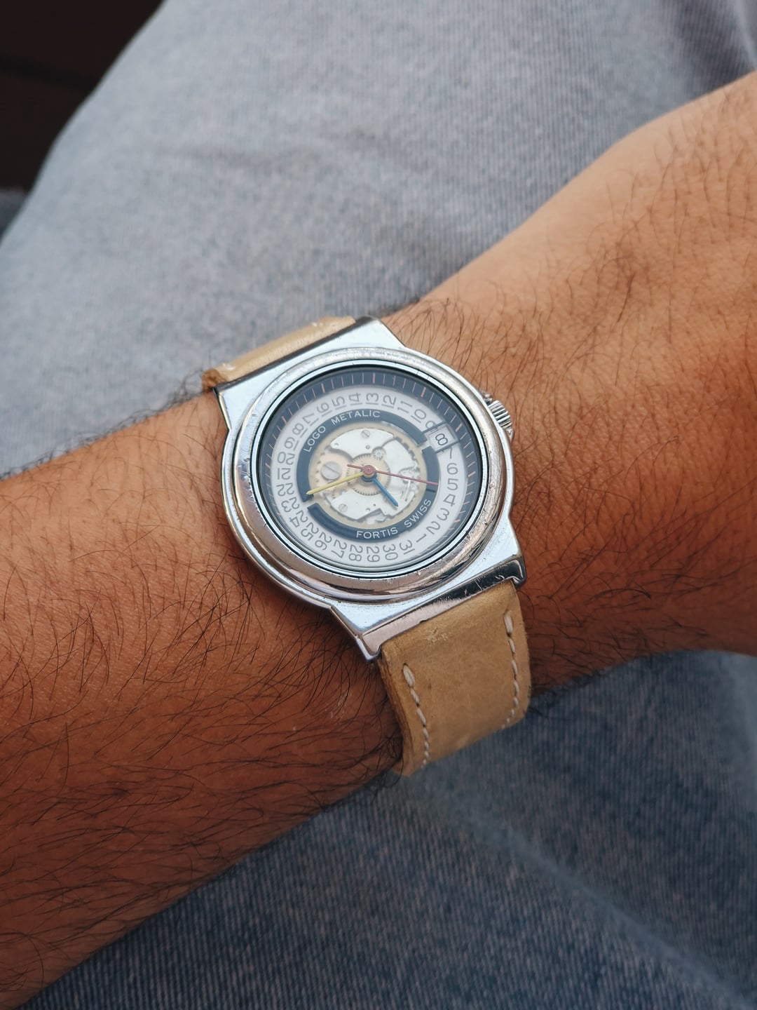 The Logo was Fortis’ answer to Swatch. Released in the late 1980s, they came in a myriad of colours, materials, and strap combinations. However, this is the only one I’ve seen with a metal case (hence the name) and an exposed movement. Not even Google Lens is helpful. **Condition:** Okay. The case is showing some signs of age, especially on the back. **Case Size:** 35.8 x 40.1mm, with a thickness of 8.9mm. **Movement:** Harley Ronda quartz movement, one jewel. **Price:** Asking $90. Please add $20 for worldwide shipping. Payment methods include Wise, ACH transfer, Revolut, Bitcoin (On-Chain or Lightning), or PayPal G&S for buyers with solid references. Add +6% for currency conversion fees on the latter. I’m located in Portugal, but worldwide shipping isn’t an issue. Established seller with over 220 transactions – buy with confidence! Make sure to follow me on Instagram (@daily.worn) to check out the newest additions. [Pictures](https://imgur.com/a/tBsa20o) [Timestamp](https://imgur.com/a/SMOs0a9)