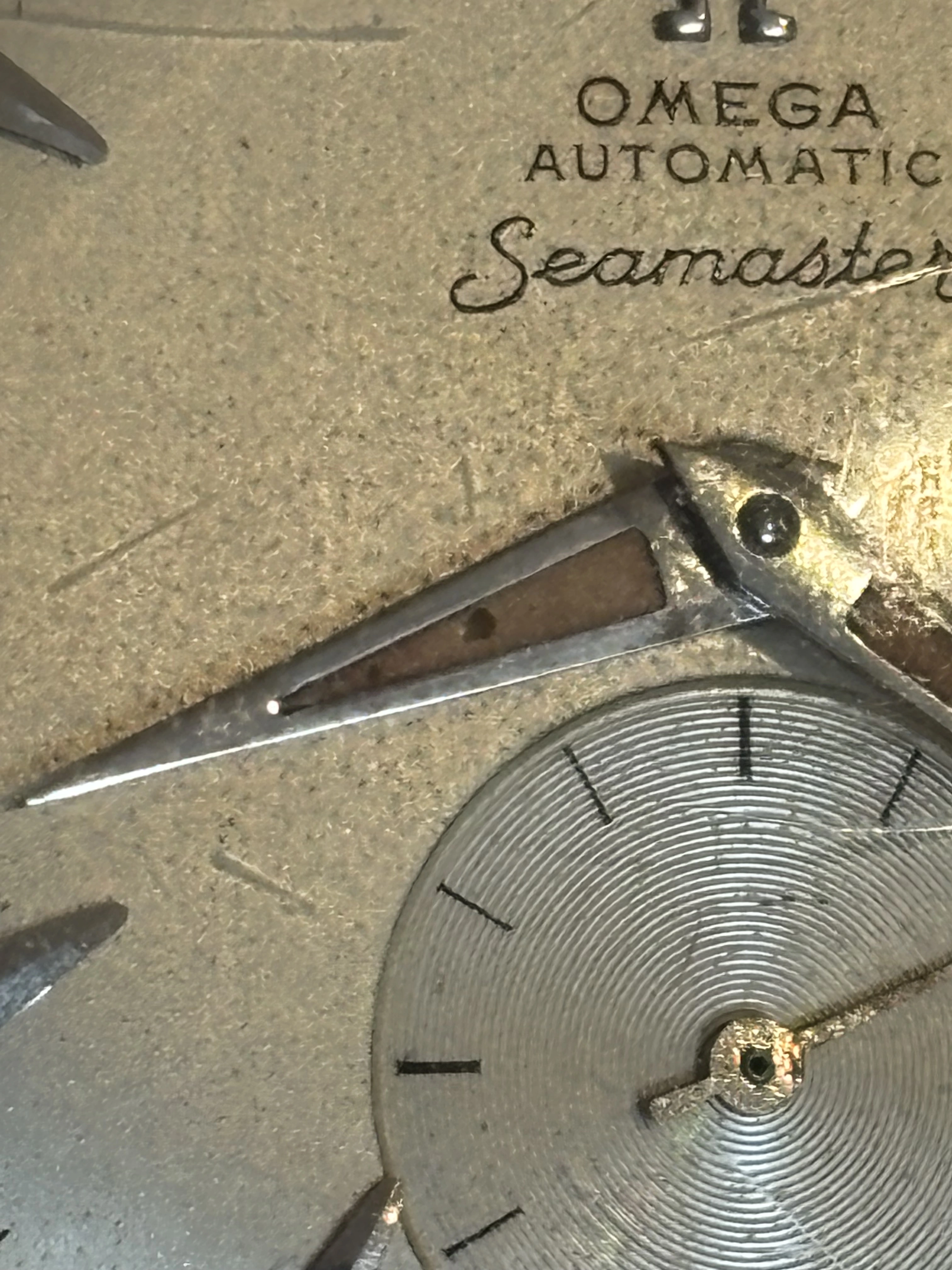 Beautiful original dial with nicely patinated lume in the hands; the hour hand has a small crack in the lume.