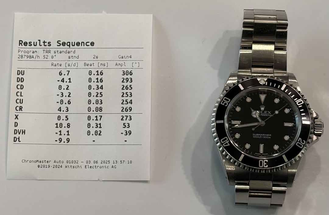 Up for sale is my Rolex Submariner 14060M Watch Only Unpolished. It is a P serial number that dates it from 2000. It's running well with accurate timing as pictured on the time grapher printout and it has passed pressure testing. The condition is very good and shows obvious signs of wear from 25 years of use. It still has the original case lines that go away from polishing and there are 10 links on the bracelet. I'm asking $7,600 plus insured shipping. I can also meet in person near the NYC/Philly area.