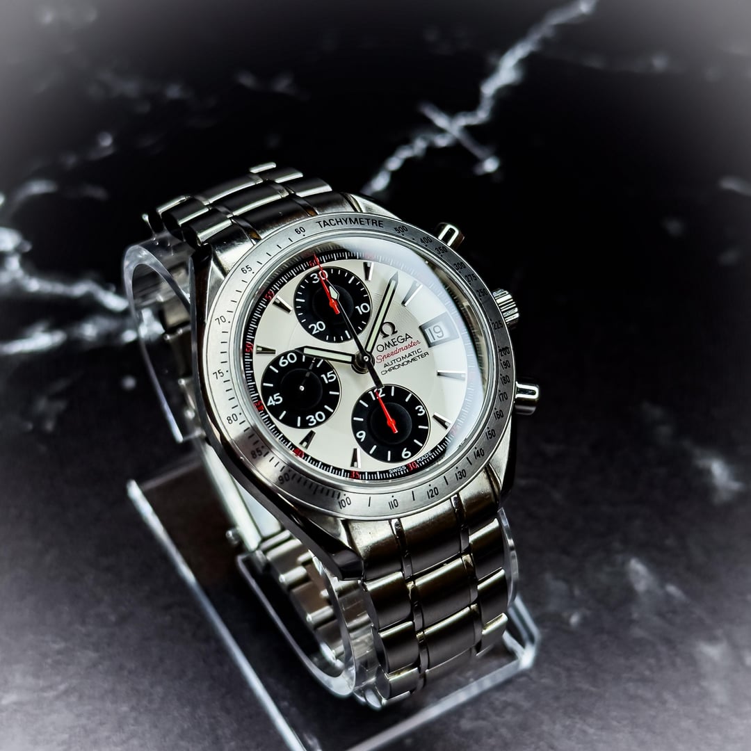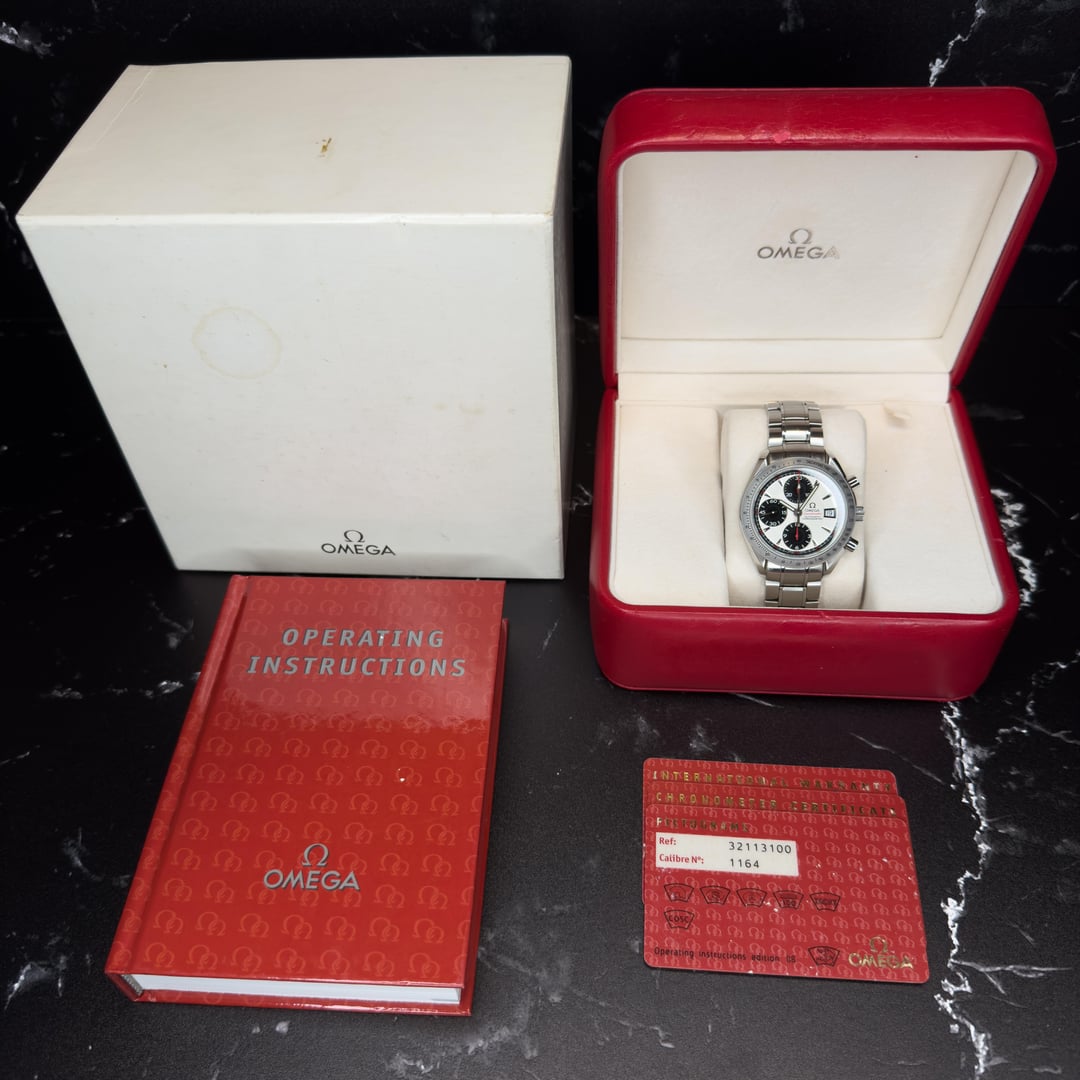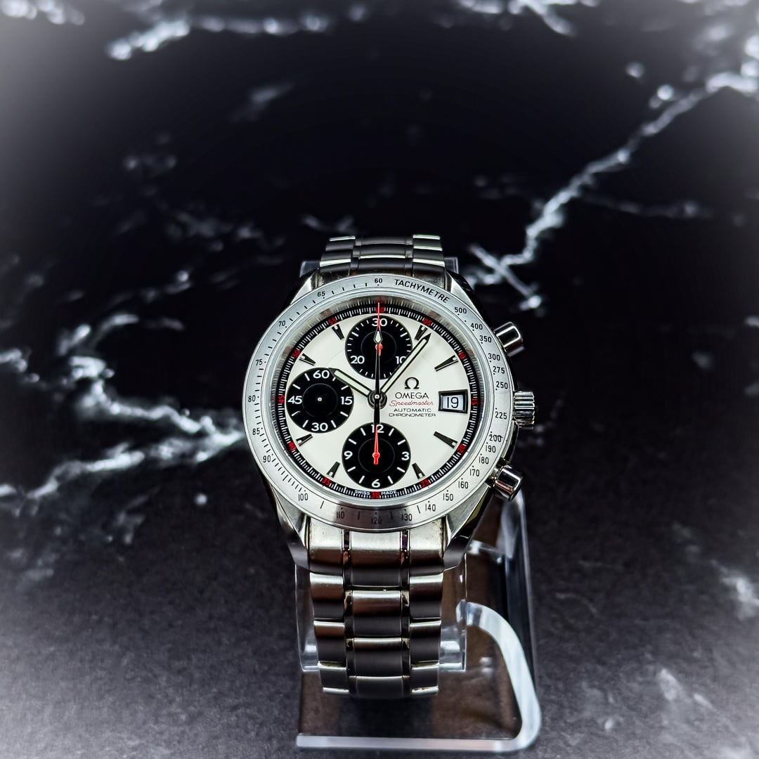 Up for sale is this beautiful Omega Speedmaster Panda 3211.31.00 Designed with both precision and style in mind, the Omega Speedmaster Date/Day‑Date 3211.31.00 "Panda" remains a standout timepiece more than 15 years after its release. Timeless in its appeal, it continues to embody class and sophistication. This is a watch for the discerning gentleman—someone who understands that a piece like this naturally draws attention and sparks conversation wherever it’s worn. Its 40mm stainless steel case and bracelet offer enduring elegance, while the crisp white dial, accented with luminous hands and subtle arrow markers, delivers a bold yet refined presence. Powered by a reliable self-winding mechanical movement, the watch ensures both accuracy and effortless wear. This timepiece is in great preowned condition. There are minimal signs of wear on the case, bracelet and clasp. The sapphire crystal is clean, free of scratches, chips and fleabites. The watch is running great, keeping time to spec. Please pay close attention to the pictures as they are the most accurate representation of the condition of the watch Sale includes: outer white Omega box, red Omega leather box, international warranty card, chronometer card and pictograms card Offered at $2799 shipped. Payment by Zelle or bank wire. Watch is located in Located in Cary, NC. Shipped insured overnight via Fedex. Buyers shipping the watch to NC will be required to pay applicable sales tax. Thanks for looking and I am happy to provide additional pictures or videos of the watch. I have dozens of references in watch groups and 100% feedback on eBay on over 200 transactions. I am happy to jump on a call/video to show the watch and answer any questions you may have. Connect on IG: u/triangleluxeco Email: [[email protected]](mailto:[email protected])
