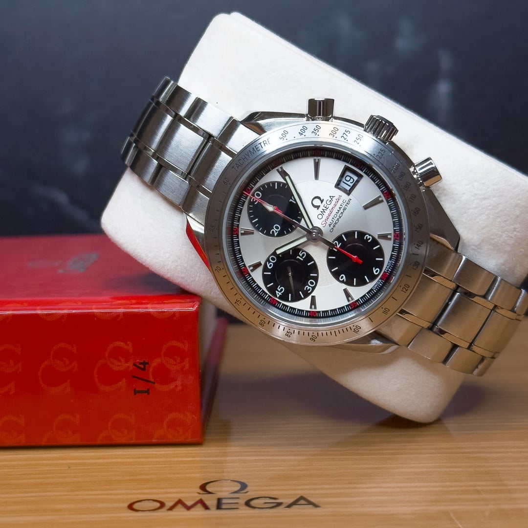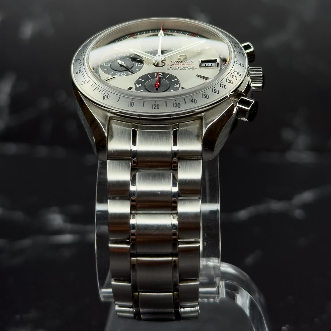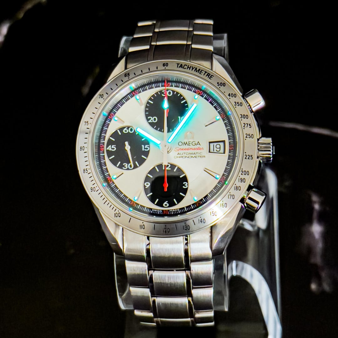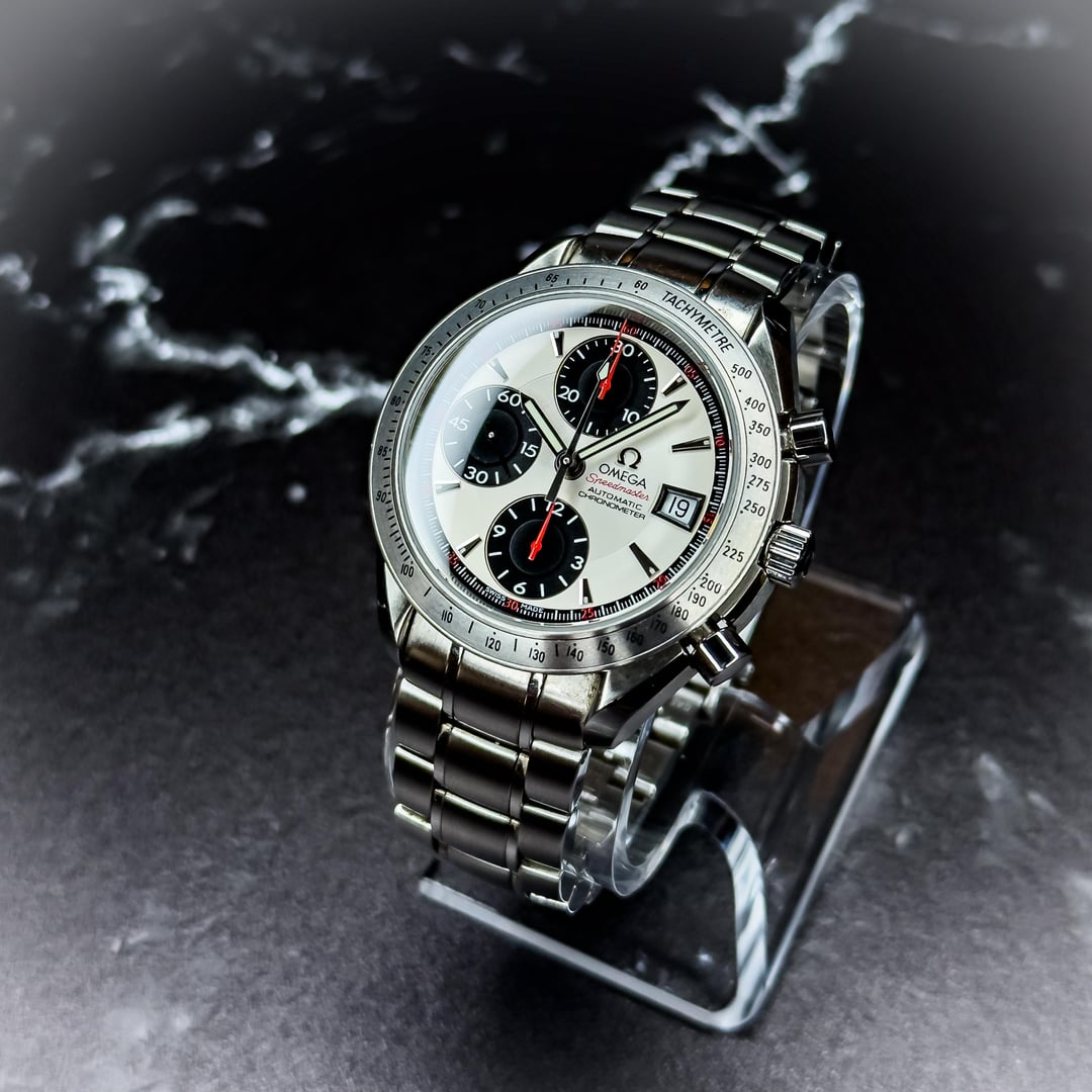 Up for sale is this beautiful Omega Speedmaster Panda 3211.31.00 Designed with both precision and style in mind, the Omega Speedmaster Date/Day‑Date 3211.31.00 "Panda" remains a standout timepiece more than 15 years after its release. Timeless in its appeal, it continues to embody class and sophistication. This is a watch for the discerning gentleman—someone who understands that a piece like this naturally draws attention and sparks conversation wherever it’s worn. Its 40mm stainless steel case and bracelet offer enduring elegance, while the crisp white dial, accented with luminous hands and subtle arrow markers, delivers a bold yet refined presence. Powered by a reliable self-winding mechanical movement, the watch ensures both accuracy and effortless wear. This timepiece is in great preowned condition. There are minimal signs of wear on the case, bracelet and clasp. The sapphire crystal is clean, free of scratches, chips and fleabites. The watch is running great, keeping time to spec. Please pay close attention to the pictures as they are the most accurate representation of the condition of the watch Sale includes: outer white Omega box, red Omega leather box, international warranty card, chronometer card and pictograms card Offered at $2799 shipped. Payment by Zelle or bank wire. Watch is located in Located in Cary, NC. Shipped insured overnight via Fedex. Buyers shipping the watch to NC will be required to pay applicable sales tax. Thanks for looking and I am happy to provide additional pictures or videos of the watch. I have dozens of references in watch groups and 100% feedback on eBay on over 200 transactions. I am happy to jump on a call/video to show the watch and answer any questions you may have. Connect on IG: u/triangleluxeco Email: [[email protected]](mailto:[email protected])