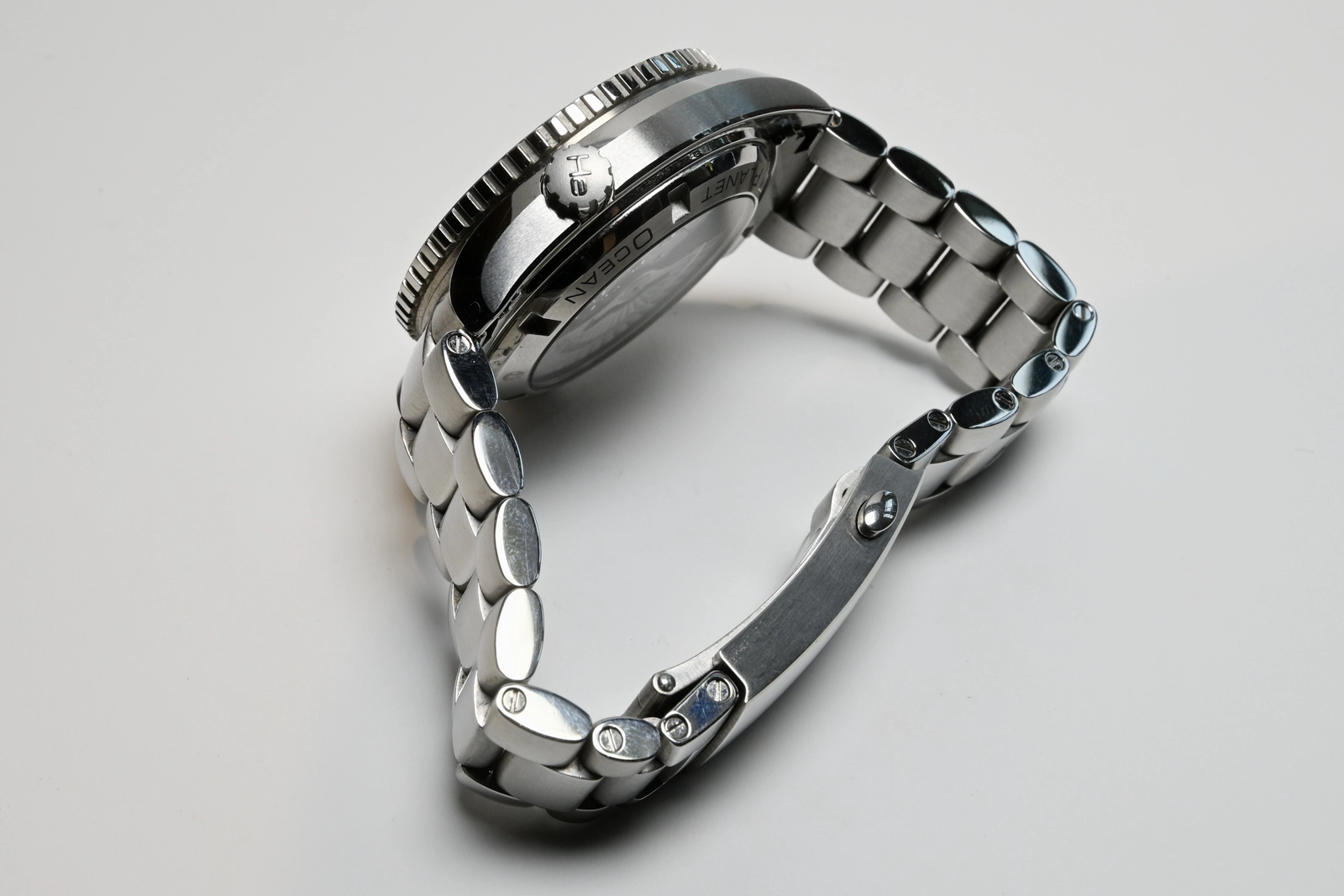 Bracelet: Stainless steel with folding clasp and diver’s extension