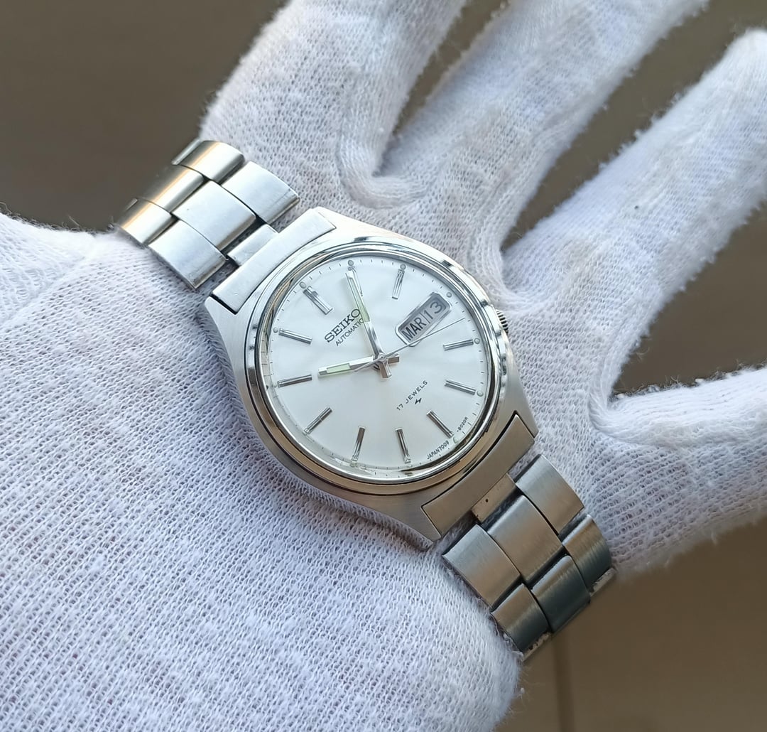 Seiko Automatic Silver Dial. Ref-7009-8028. Description and Features: Overall this is in good Working condition. This Seiko Automatic watch features a classic design with a Silver Sunburst dial, perfect for any occasion. The watch is powered by Seiko's 7009 automatic movement. Features:12-Hour Dial, Day/Date. Movement: Mechanical (Automatic). Glass: Acrylic crystal. 17 Jewels. Case Material: Stainless Steel. Fold-Button Deployant. It will fit wrists of up to 7.8”Inches. Please see the pictures carefully. SPECIFICATIONS: Movement: Automatic, Case Diameter, 37 mm, Thickness 12 mm, Lug Width 18 mm, Lug to Lug 41 mm, Watch only.  Please comment before messaging.          Payment Method: PayPal friends & family, Crypto, Payoneer & Binance Only.                                Shipping From FedEx Express Shipping. Price $140 Shipped. After payment confirmation the scheduled shipping time will be 2-3 working days.