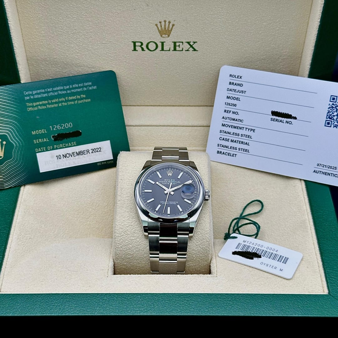 RLX DateJust 126200 2022 ✅Inner/Outer box ✅2022 WC ✅Authentication Card ✅White matching Hang tag $7,950 + L Send an offer!