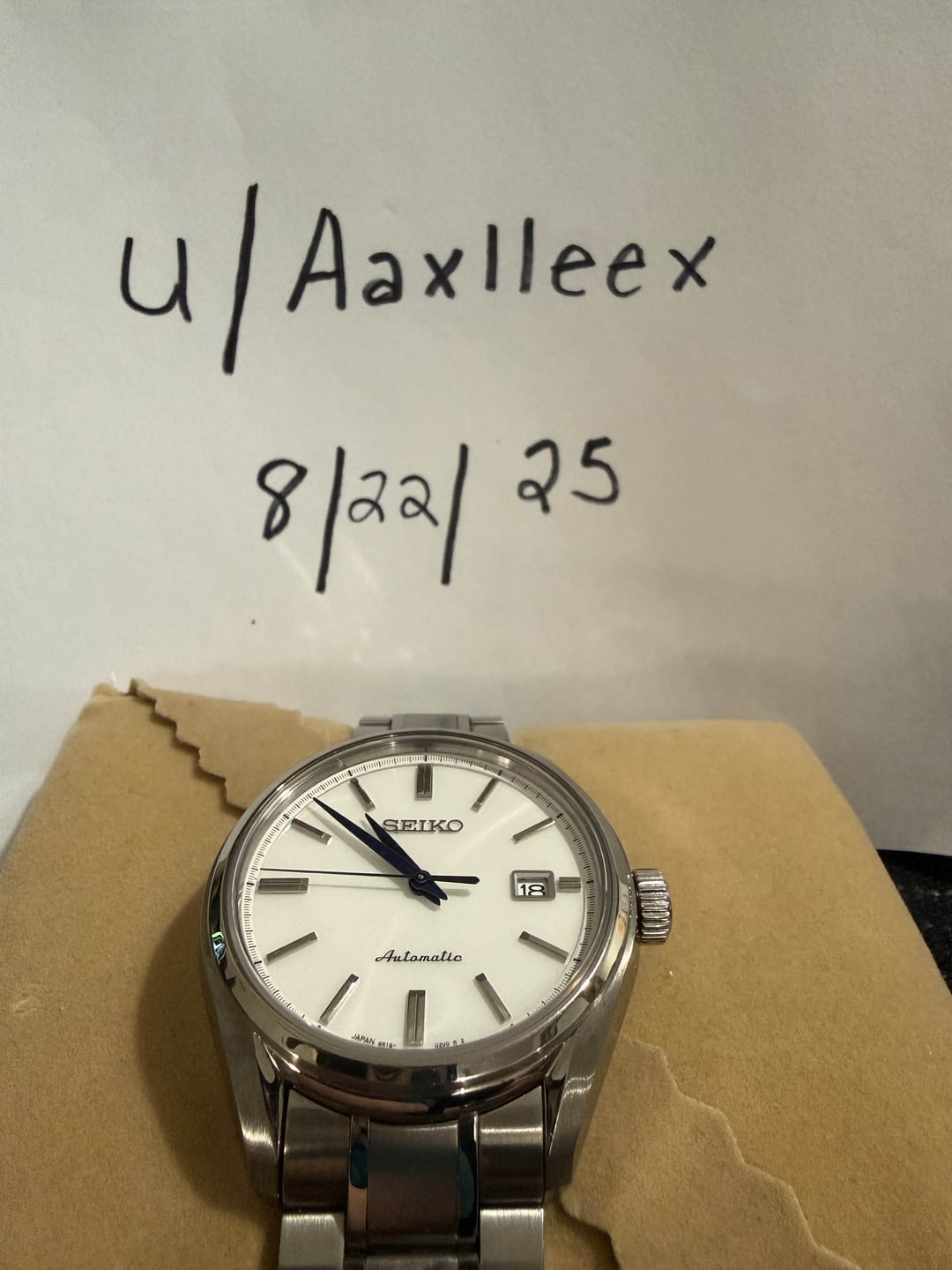 For sale. $650 Shipped CONUS - Payment PayPal G&S Seiko “Baby Snow Flake” SARX033 Great condition. Stunning white dial with blue hands. Case size is 41mm Lug width is 20mm Lug to lug is 46.2mm Case thickness is 11.5 mm Movement is the 6R15 21,600 BHP with a 50 hour reserve. Steel case and bracelet with a sapphire crystal. Have original box, tags and papers including all links.