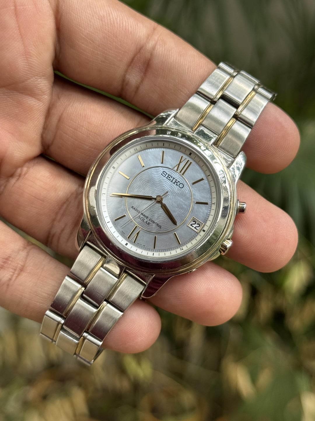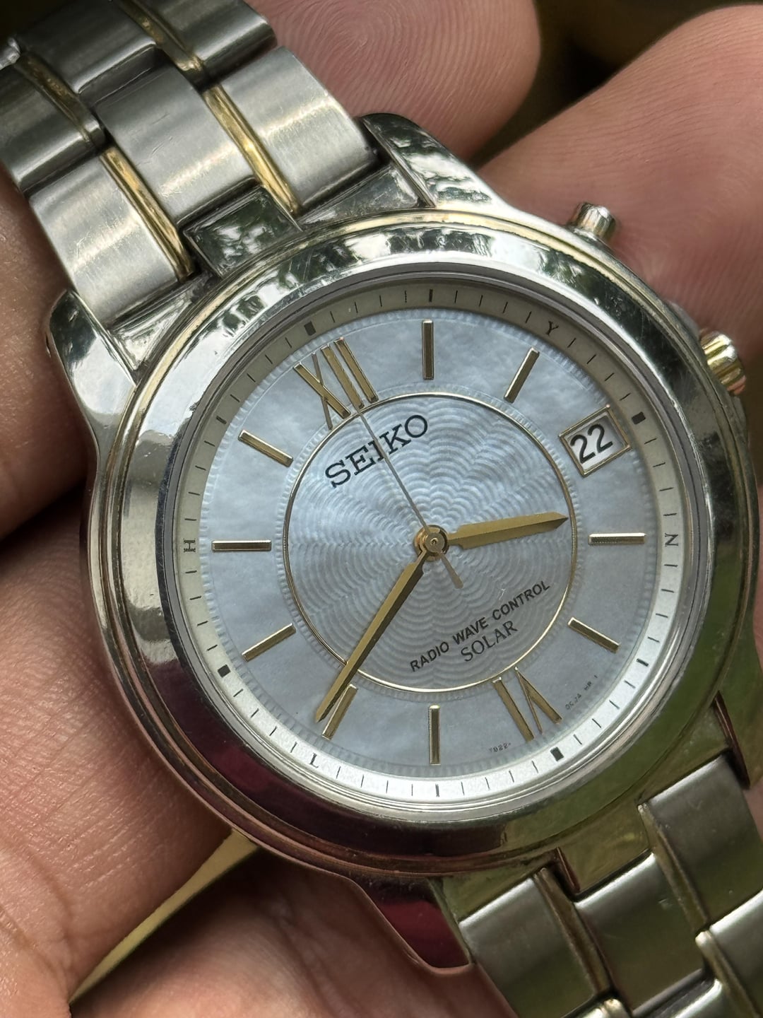 Beautiful Seiko MoP dial radio wave condition Stunning dial with a two tone case. Overall good condition. Approx 7.2 bracelet Price : 180$ through wise / Zelle