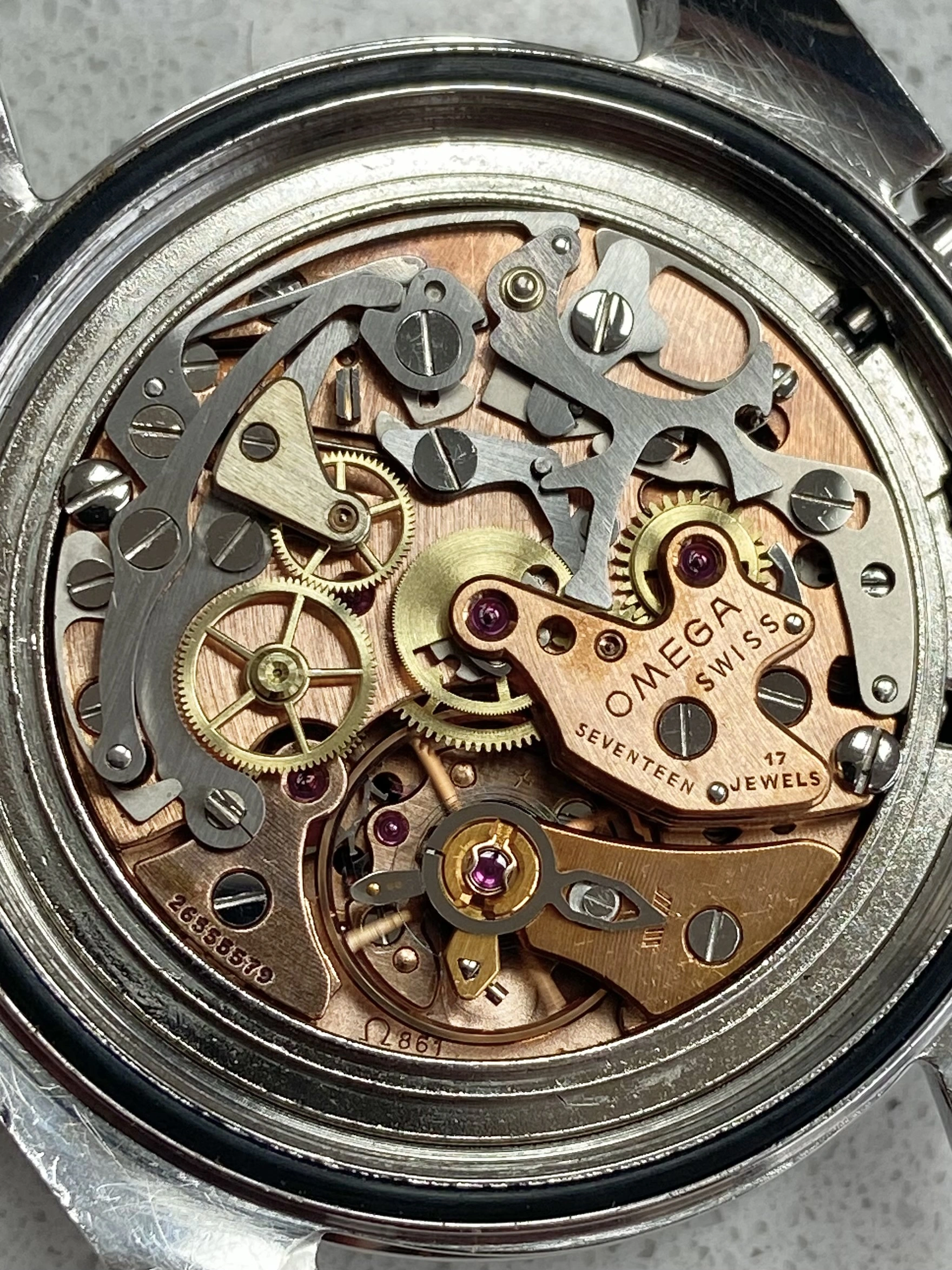 Original 861 movement in very good condition. All functions work as they should, serviced by STS in 2015. Very early 861 movement with serial 26,555,579 (I’ve haven’t ever seen an earlier serial in an 861 Speedmaster).