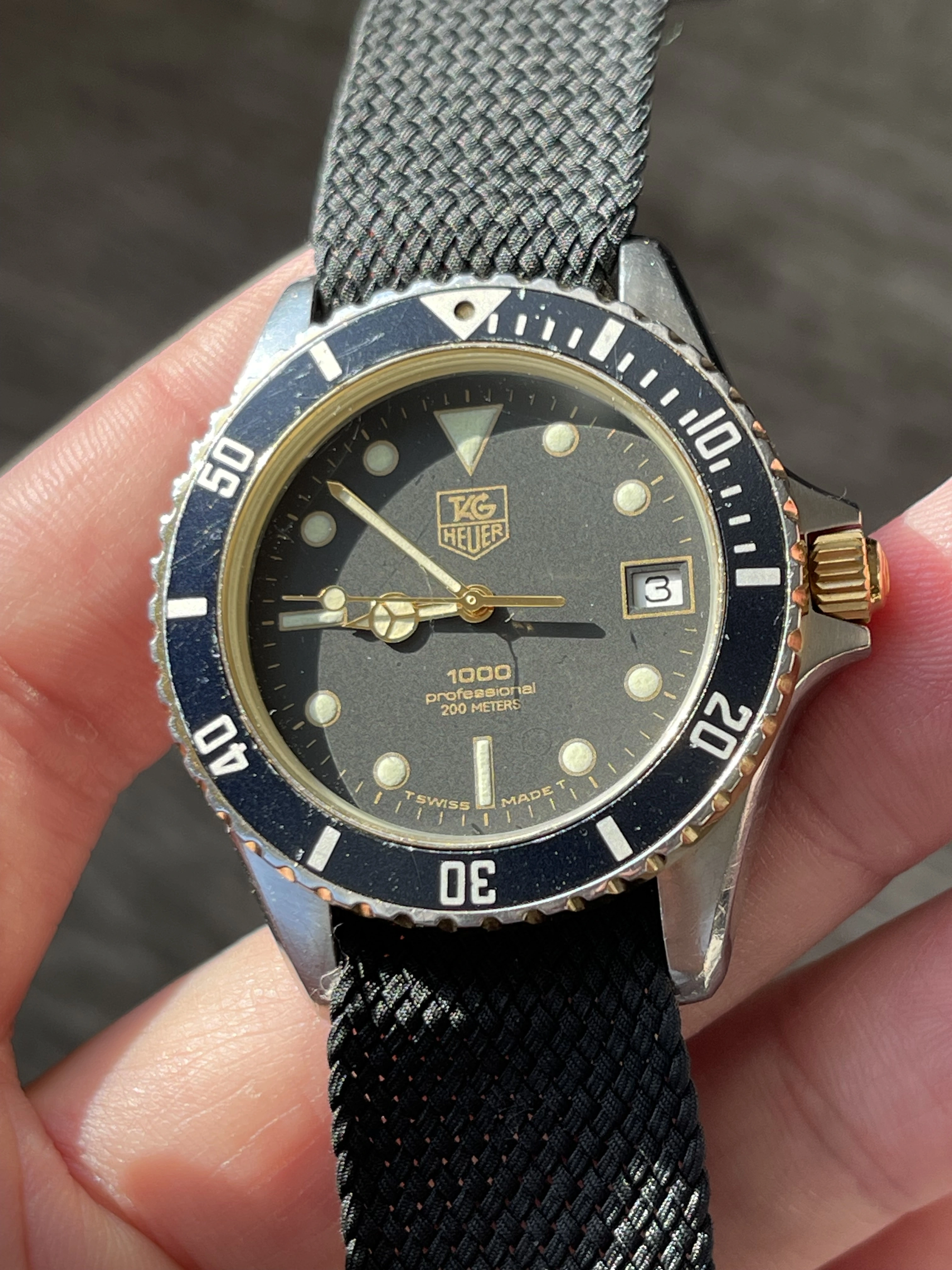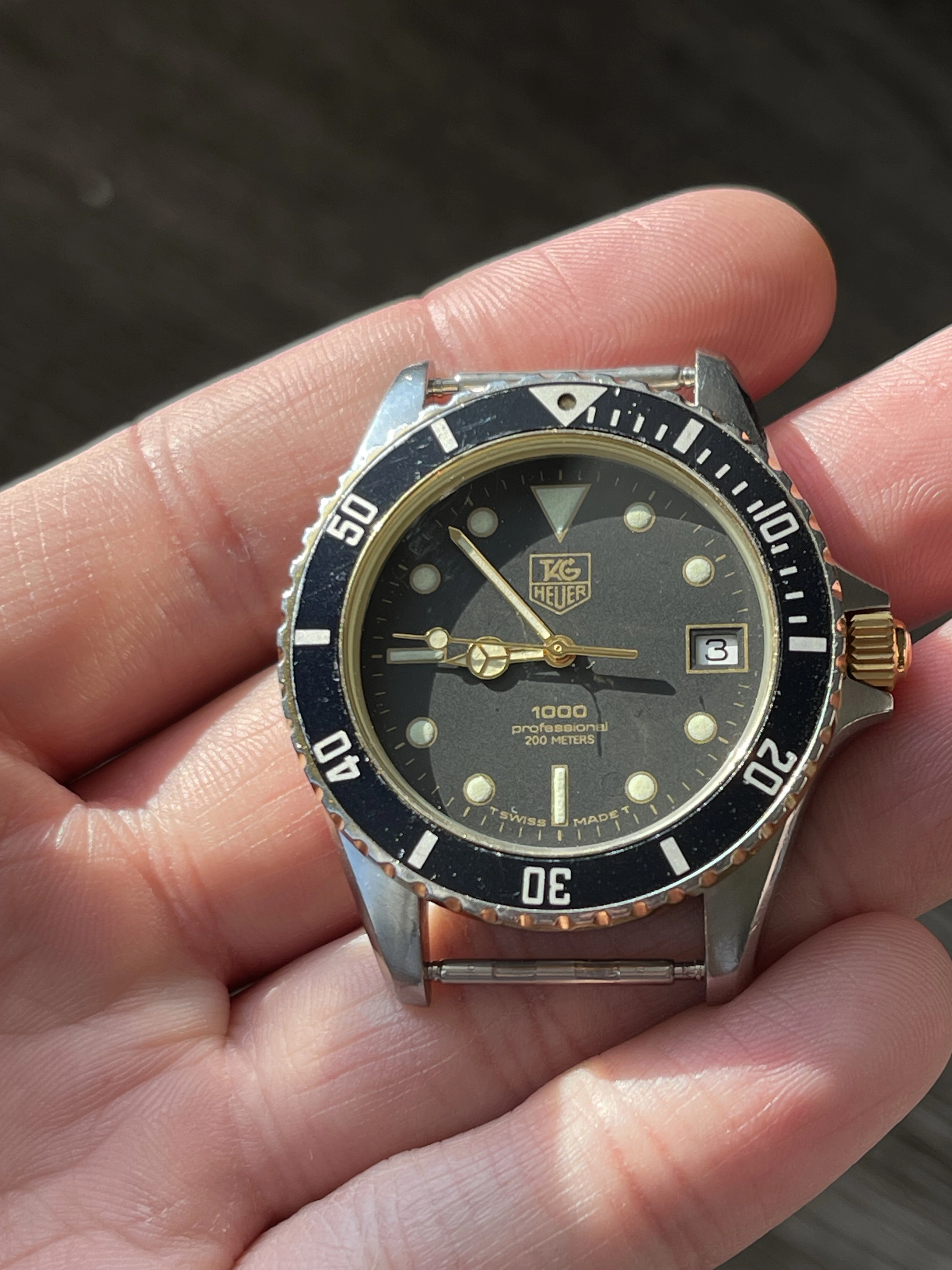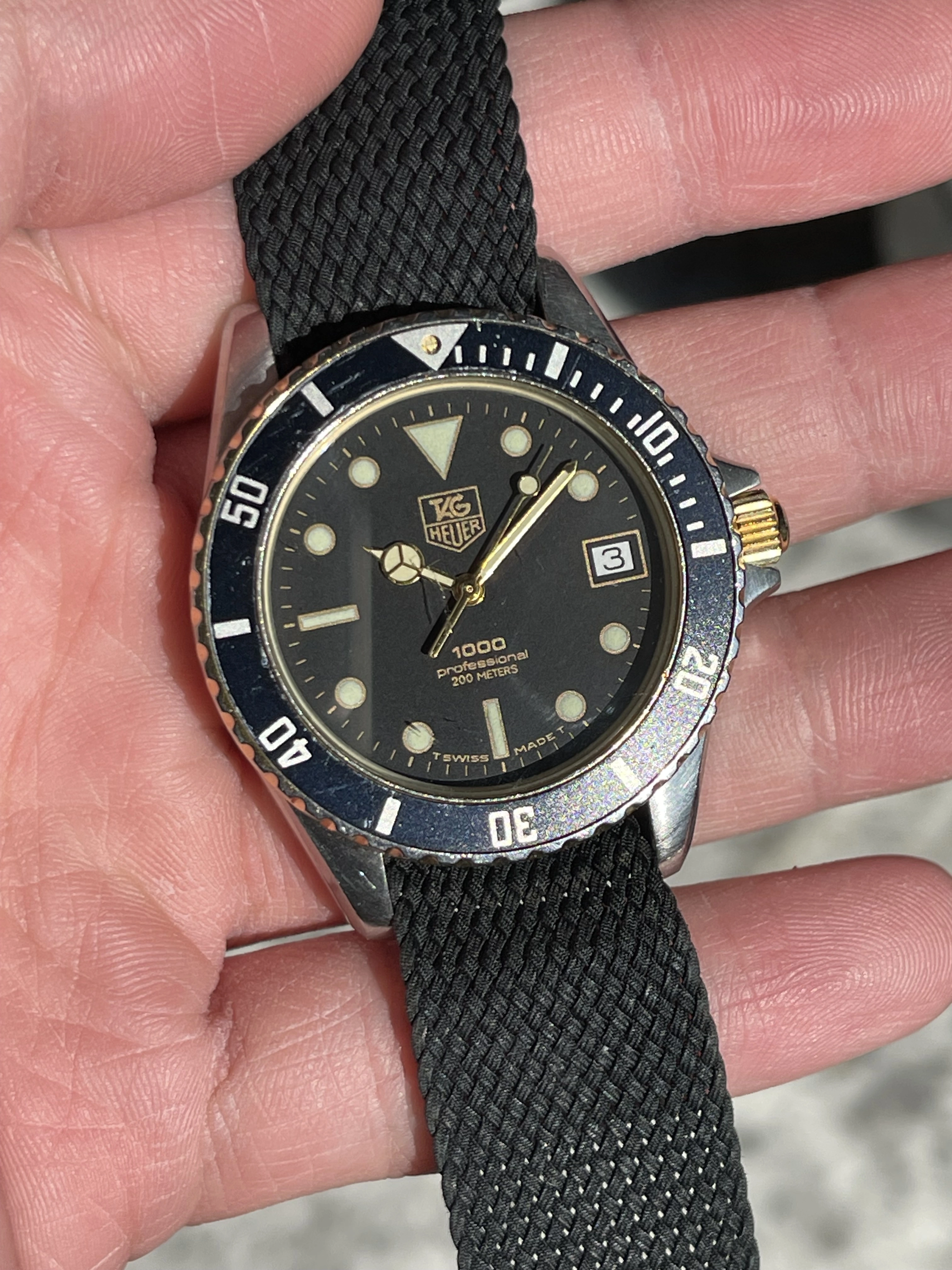 For sale is a vintage 1989 Tag Heuer 1000 Professional ref. 980.020N in stainless steel and yellow gold. Size is 38mm.