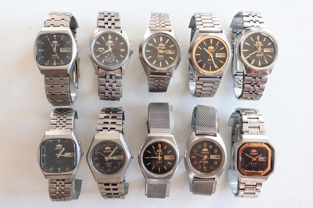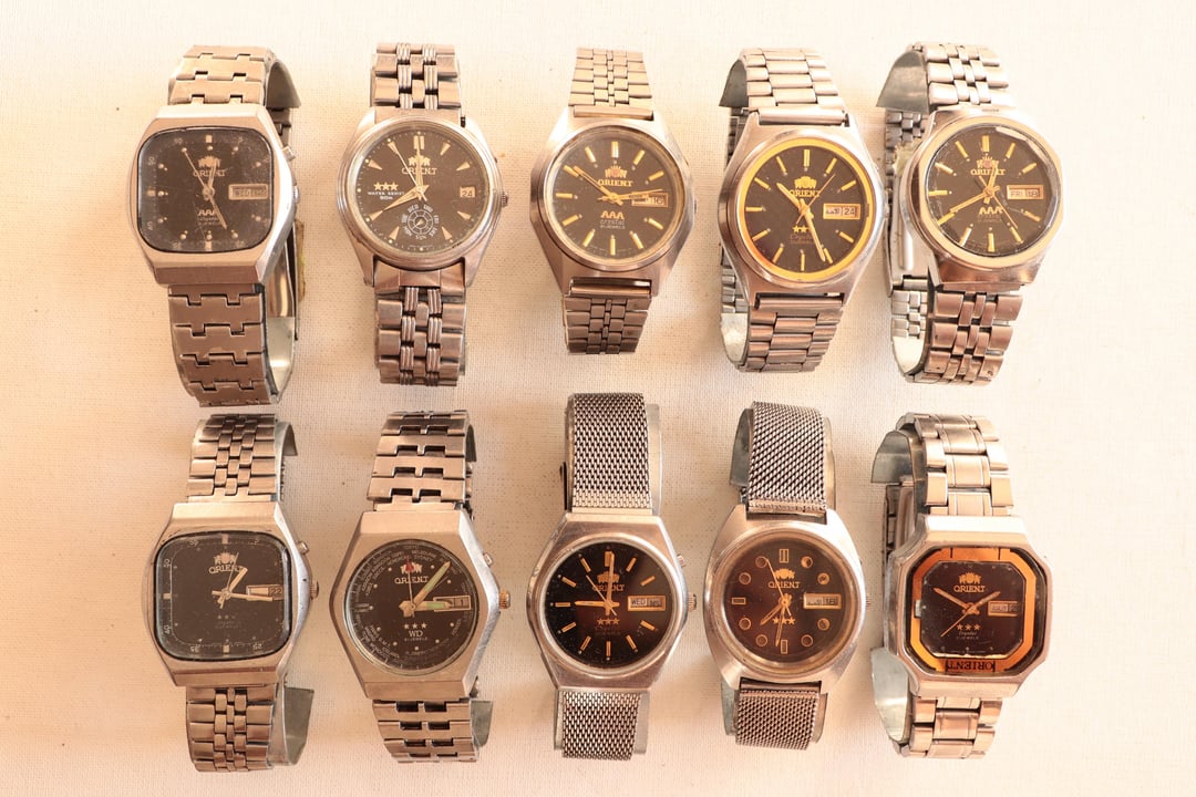 Hi Watchfam, Up for sale is a **set of 10 vintage Orient Crystal automatic watches**. These are true classics from the golden era of Japanese watchmaking, featuring a variety of **rare dials** including **black**. ✨ **Details:** * **Brand:** Orient (Crystal Automatic Series) * **Movement:** 21-Jewel Automatic * **Condition:** Good to excellent vintage condition (all running well, natural vintage character) * **Dials:** Rare variations – black and unique textured styles * **Functions:** Day-Date / Date * **Bracelets:** Mix of stainless steel and mesh styles 💲 **Pricing:** * **Full Lot (10 watches): $849** * **Individual pieces: Starting at $70 each** * **Open to negotiation** 📦 **Shipping:** * Worldwide tracked & insured * **Free shipping for 3 pieces or more** This is a great chance for collectors, resellers, or anyone who loves vintage Japanese automatics to pick up some unique, hard-to-find Orients.