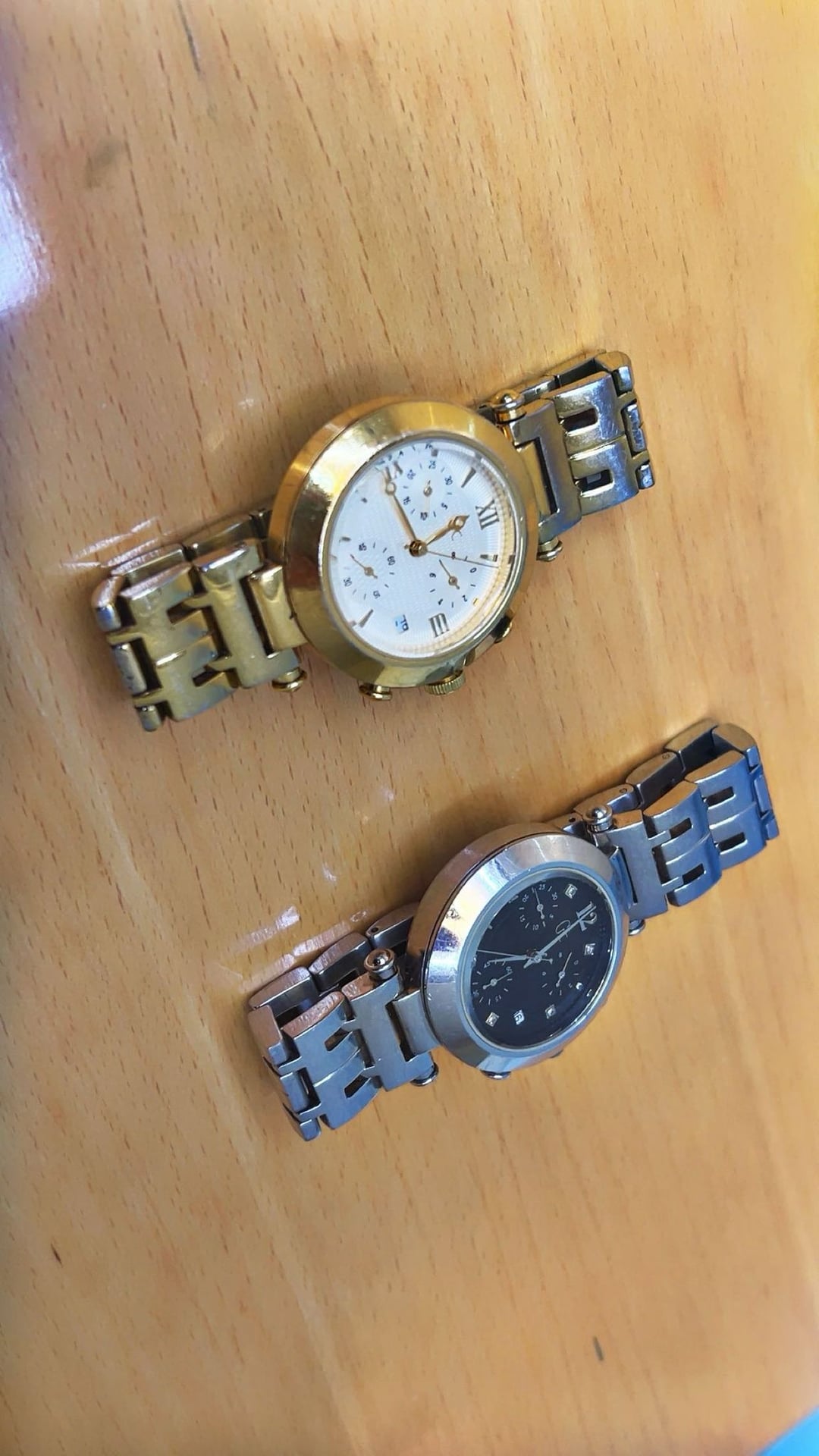 **Guess Collection GC 20500 Men’s Chronograph Watches (2X Bundle)** Stainless steel cases, one with black dial and one with white/gold dial – both feature ETA G10.711 quartz chronograph movement. Pre-owned, fully working, Swiss made. Great set for collectors. price : 70$ per one ( 130$ for 2 ) Timestamp : in photo