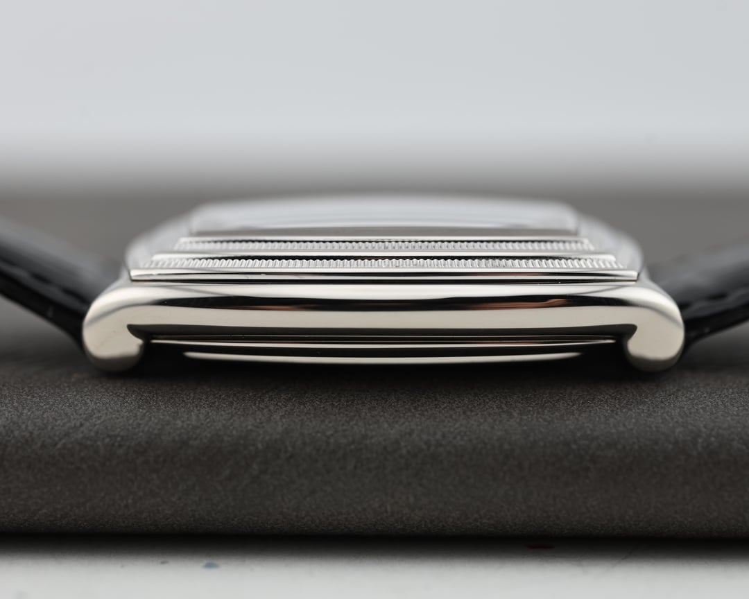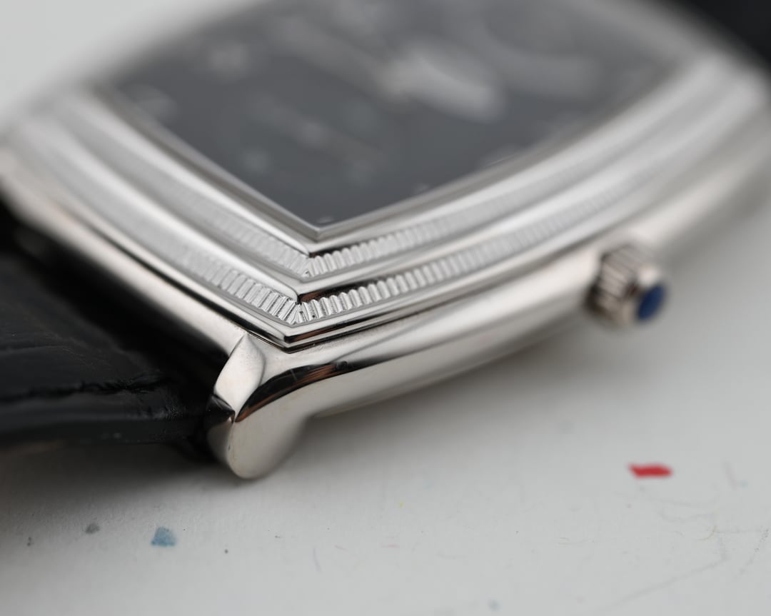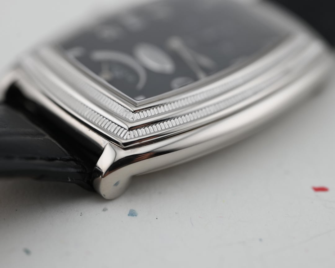 First released in 1999 as Parmigiani Fleurier’s first tonneau shaped watch, the Ionica 8-day exhibits the brand’s signature Doric styling details, like the double stepped coin edged bezel, paired with Parmigiani’s first true in-house mechanical movement, the caliber PF110, that is impressively finished and shaped to perfectly fit its case. **Case:** the 34 x 45 x 11 mm solid white gold case is in very good condition and free of any notable defects, though minor surface swirls may be present, as pictured. The case has a definite heft and presence that almost makes you think it might be platinum upon picking it up. The hallmarks and engravings are all very deep and crisp, as pictured. **Dial:** The matte black dial is lightened in color due to the guilloche pattern throughout that catches more light, with an intricate pattern to be appreciated by the wearer, or under a loupe. This serves as a subtle backdrop to the highly polished Breguet numerals, distinctly shaped spade hands, and very clean vertically stacked layout of the power reserve indicator, signature, and sub seconds register. The dial and hands are free from any defects. **Movement**: The manually wound PF110 is nothing short of impressive. Parmigiani’s first true in-house movement that was also specifically designed for the case shape and makes excellent use of that real estate, showcasing the impressive finishing throughout, including plenty of interior angles and anglage. The watch features a quickset date, swan’s neck regulator, and is winding, setting, and running smoothly, at approximately – 2 s/d, averaged across 6 positions. Service history is unknown. **Includes:** The watch is presented on an aftermarket black leather strap with it’s original, signed, white gold buckle. Price: $14,900 USD including fully insured FedEx shipping to a FedEx Office location or commercial address within the continental US, international shipping available at cost based on location. Payment by ACH or wire, no trades please. I have all positive references here, forums, C24, and instagram (@)meticulist Thanks mods for the space.