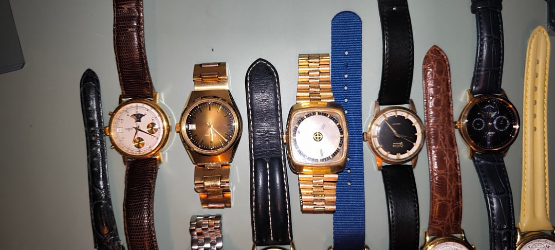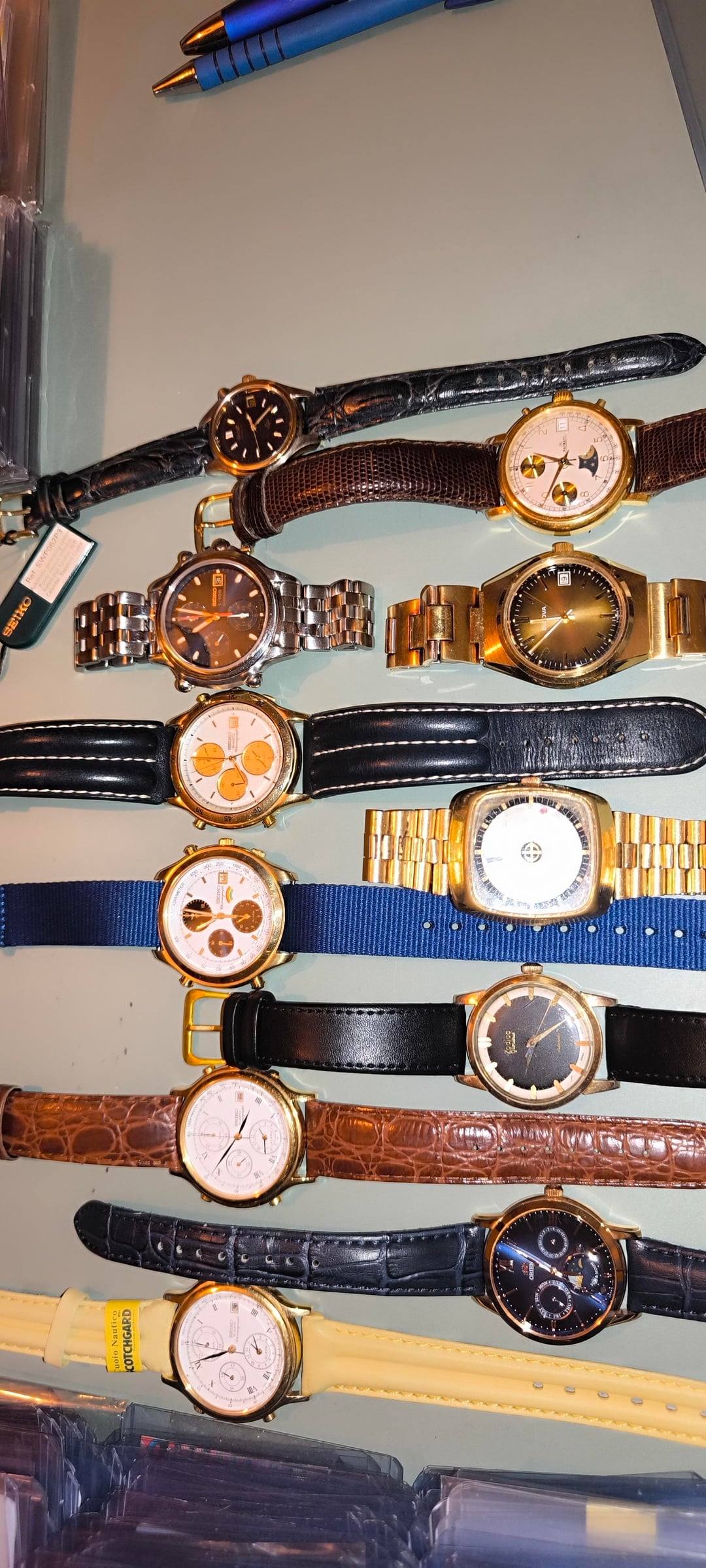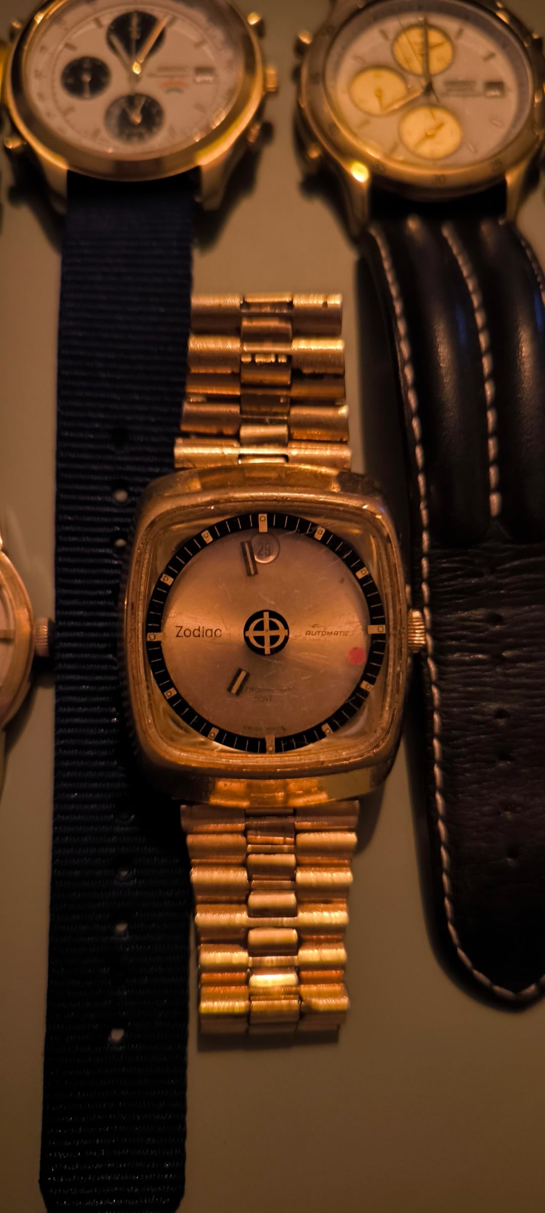 Hello all, Here are a batch of watches from my own collection for sale. I'm selling them because I'm thinning out my collection since the arrival of our first child a few months ago. Prices/shipping are negotiable and if you find it cheaper elsewhere lmk I'll lower the price. Everything works, the watches that don't have batteries will receive fresh ones and functions have been checked, everything works with the exception of the alarm sound for the Seiko Rainbow chrono. I'm happy to provide custom timestamps and videos of functions working or the watch in different bright light to highlight condition etc , please ask! Prices are excluding shipping costs (willing to split the cost), I ship from the Netherlands worldwide and accept payment through Paypal G&S (+4,3% for the buyer) and Friends & Family for anyone without transactions. Seiko: -2x Seiko 7T32-6A50 (1990s) vintage chronograph, once lightly used and once unworn. -$100 and for unworn -$180. -Seiko 7T32-6E30 Rainbow Chronograph from December 1992, lightly used. $185 -Seiko 7T32-7B40 Chronograph with stardust dial, lightly used. -$210 -NOS Seiko Kinetic 3m22-0B20 April 1996 -$135 -Seiko 7t52-7A10 Speedmaster/Speedtimer with legendary (and working) 1/100s chronograph function from 1993, in excellent condition with very light wear but scratch-free dial and crystal. -$245 - Beautiful Wasmann Chronograph with moon phase, manual wind, dating from the 1980s and 1990s, with a Swiss Valjoux 7768 movement. Everything works properly. -$485 - Bulova manual wind watch from 1977 with an auto-date function and a beautiful sunburst dial in excellent condition with the original bracelet still attached. -$160 Bulova (ref. 12445-3Y) Auto-date with the original mechanical (manual wind) 11AOCD 17-jewel movement. - Orient Sun & Moon limited edition (35mm) with a Japanese quartz movement, sun and moon indication, as well as day and month, mint condition, including original strap, box, and papers.-$245 Two Zodiacs - Zodiac Glorious Automatic Men's Watch 34mm, 1950-1959, Ref. 688 Cal. 1361 -$470 The watch is in good condition, with slight discoloration on the lugs and minor scratches, but otherwise in excellent condition with the original dial and movement. Only the strap has been replaced. Both the manual and automatic winding functions work. - Zodiac Astrographic Mystery Dial Automatic. (Men's) -$275 This watch was made in or shortly after 1969 and, as you can see, has the most signs of wear of all the others and is in need of a major overhaul. However, the watch works perfectly and comes on its original bracelet. The red dot (second hand) flies around very smoothly due to the automatic hi-beat movement that still works excellently, including the date change. ''These Zodiac SST watches utilized a specially adapted automatic movement (Zodiac Cal 88D) operating at an impressive 36,000 beats per hour. This high beat rate allowed for a smooth, continuous sweep of the red dot around the so-called "mystery dial." In reality, this dial is composed of three superimposed clear rings, with the hands and dot marked on individual discs within this layered structure.''