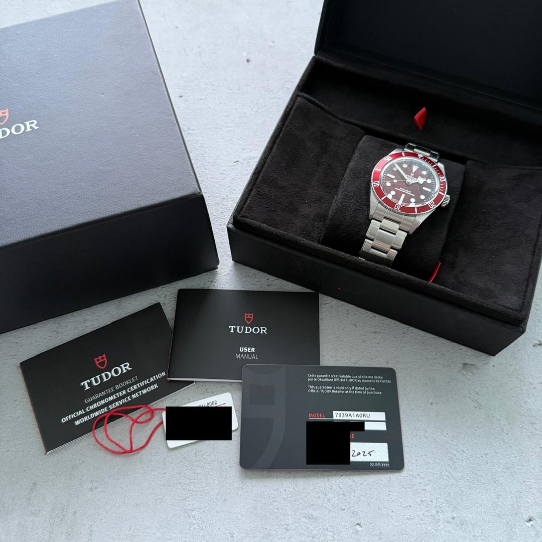 We are pleased to offer an excellent example of the Tudor Black Bay 58, reference 7939A1A0RU, complete with its original box and papers dated 2025. This model captures the spirit of vintage dive watches with its perfectly proportioned 39mm waterproof case, while making a bold statement with its striking red dial and matching red bezel. This distinctive aesthetic is both confident and tastefully versatile. The watch is powered by Tudor's in-house, COSC-certified caliber, ensuring robust performance and an ample power reserve for daily wear. This example is presented in attractive, all-original condition, showing only light, honest wear. Its legible lume, responsive bezel action, and exceptional comfort on the wrist make it a true pleasure to own. With its international warranty valid from the 2025-dated card, this is a fantastic opportunity to acquire a complete set. * **THE DETAILS** * **Case:** 39 mm stainless steel case which in razor sharp condition, it remains unpolished and shows light signs of wear * **Bezel:** Original Tudor Bezel in stunning condition with no distractions * **Dial/Hands:** Original Tudor red dial which is perfect in every way. Hands are as attractive as they left the factory. * **Bracelet/Strap:** Original Tudor Stainless Steel strap which remains unpolished and shows light signs of wear including a few marks on the bracelet * **Movement:** Tudor automatic movement which is currently running well * **Crystal:** Original sapphire crystal free from any marks or scuffs * **Accessories:** This watch come with everything you see in the photos including the original box, 2025 warranty papers, booklets and everything else seen in the photos * Available for sale US$3680
