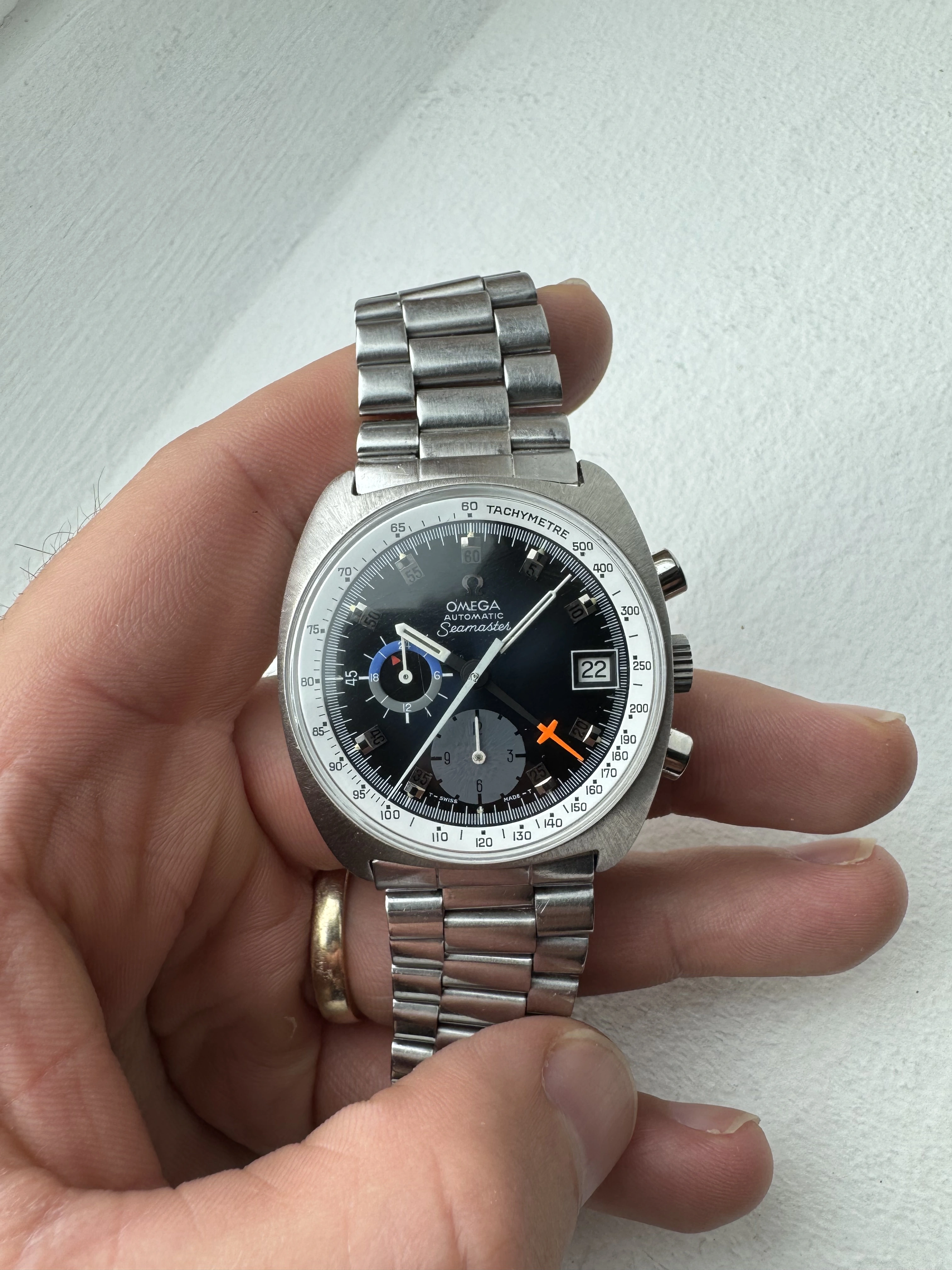 Overall the watch is in a great condition for its age. I really liked the contrast of blue dial, white Rehaut and orange minute counter hand.