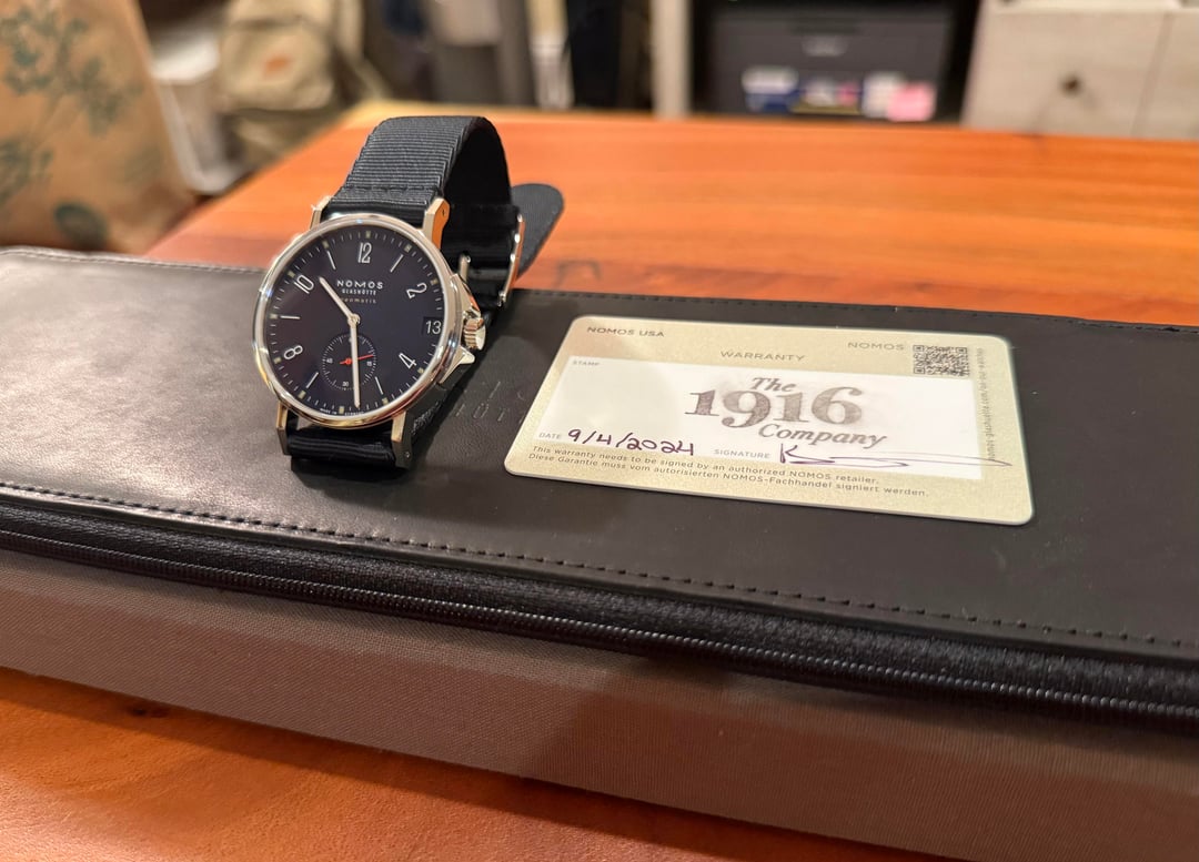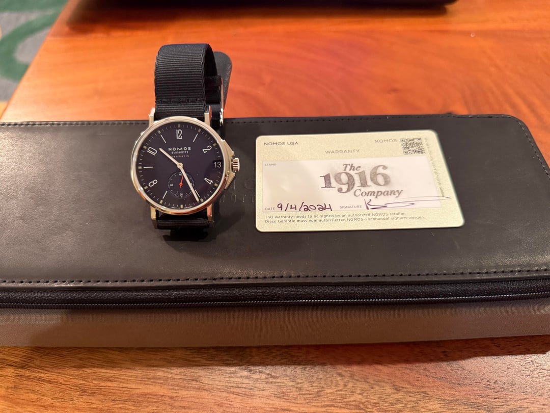 Selling a like new Nomos Ahoi Neomatik 38 Date with a beautiful Atlantic blue dial. Condition is superb (9.5) with virtually no perceptible scratches. Crystal is clean and the original textile strap shows almost no wear. Comes with full set including all original boxes and warranty dated September 2024. Watch retails for $5,300. **Asking $3899 (includes shipping to the U.S. or can offer local pickup in Chicago, IL).** Will accept PayPal, Zelle, Venmo, or wire. **NO TRADES.** Timestamp, video, and pictures: [https://imgur.com/a/nomos-ahoi-38-date-ref-528-wDQNHpG](https://imgur.com/a/nomos-ahoi-38-date-ref-528-wDQNHpG) **SPECIFICATIONS** Case diameter: 38.5 mm Case thickness: 9.8 mm Lug to lug length: 48.7 mm Lug width: 20 mm Case material: Stainless steel Strap: Waterproof blue-black textile strap Glass: Domed sapphire crystal with AR coating inside and out Movement: Nomos UW 6101 Automatic Power Reserve: 42 hours Made in Germany