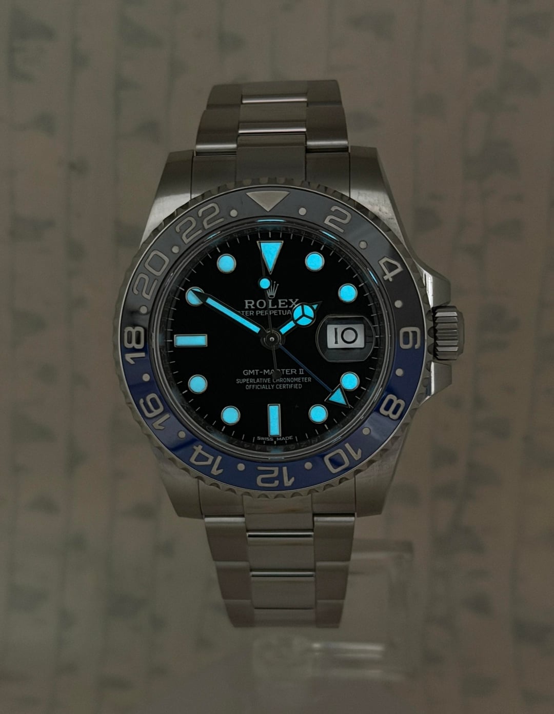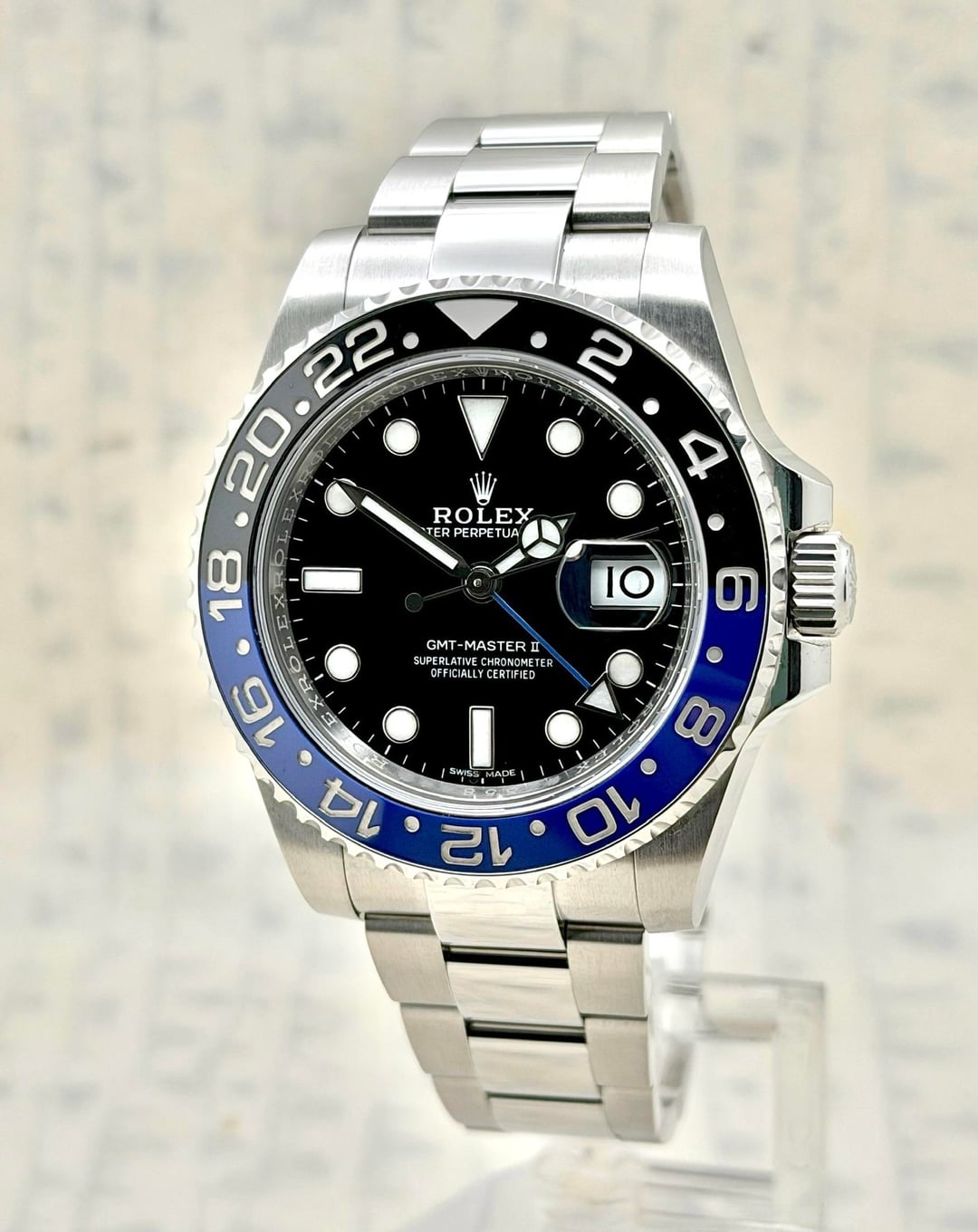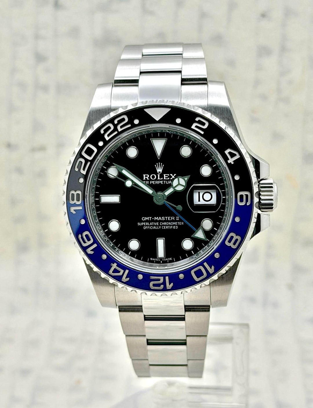 \[WTS\] Rolex GMT Master II "Batman" - 116710BLNR - 2018 [MORE PICS](https://www.grailtimeco.com/rolex-gmt-master-ii-batman-116710-blnr-2018/) [YOUTUBE VIDEO](https://youtube.com/shorts/_49YFGYFa1Q) [TIMESTAMP](https://imgur.com/oCNogxd) [TIMEGRAPHER STATS](https://imgur.com/DD1KfGR) [PRESSURE TEST](https://imgur.com/p4DNQL6) [INSTAGRAM](https://instagram.com/grailtimeco) **The Caped Crusader** This Rolex GMT-Master II ref 116710BLNR, commonly known as the "Batman," features a sleek scratch proof black and blue ceramic bezel. It has quickly become one of the most iconic and sought after watch in the Rolex catalog. It comes with a sleek Oyster bracelet and is powered by the Rolex 3186 movement offering a 50 hour power reserve. Watch is in fantastic condition all round and is running well. Watch comes as "full set" with inner and outer boxes, 2018 warranty card, tags and booklets. **$15,500** shipped Fedex next day, fully insured, to the USA or arrange pick up from Hoboken, NJ. Can ship internationally if you provide the label. Wire payment, zelle or paypal friends and family. Please feel free to contact via Reddit DM with any questions. **As per sub rule, please comment “PM” before sending a PM or DM.** Thanks Plenty of references available from Reddit Watch Exchange, Rolex Forums and on my Website. **Grail Time Co LLC**