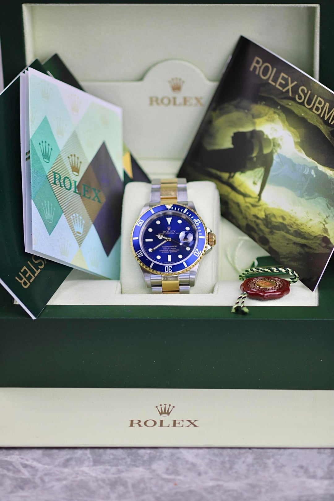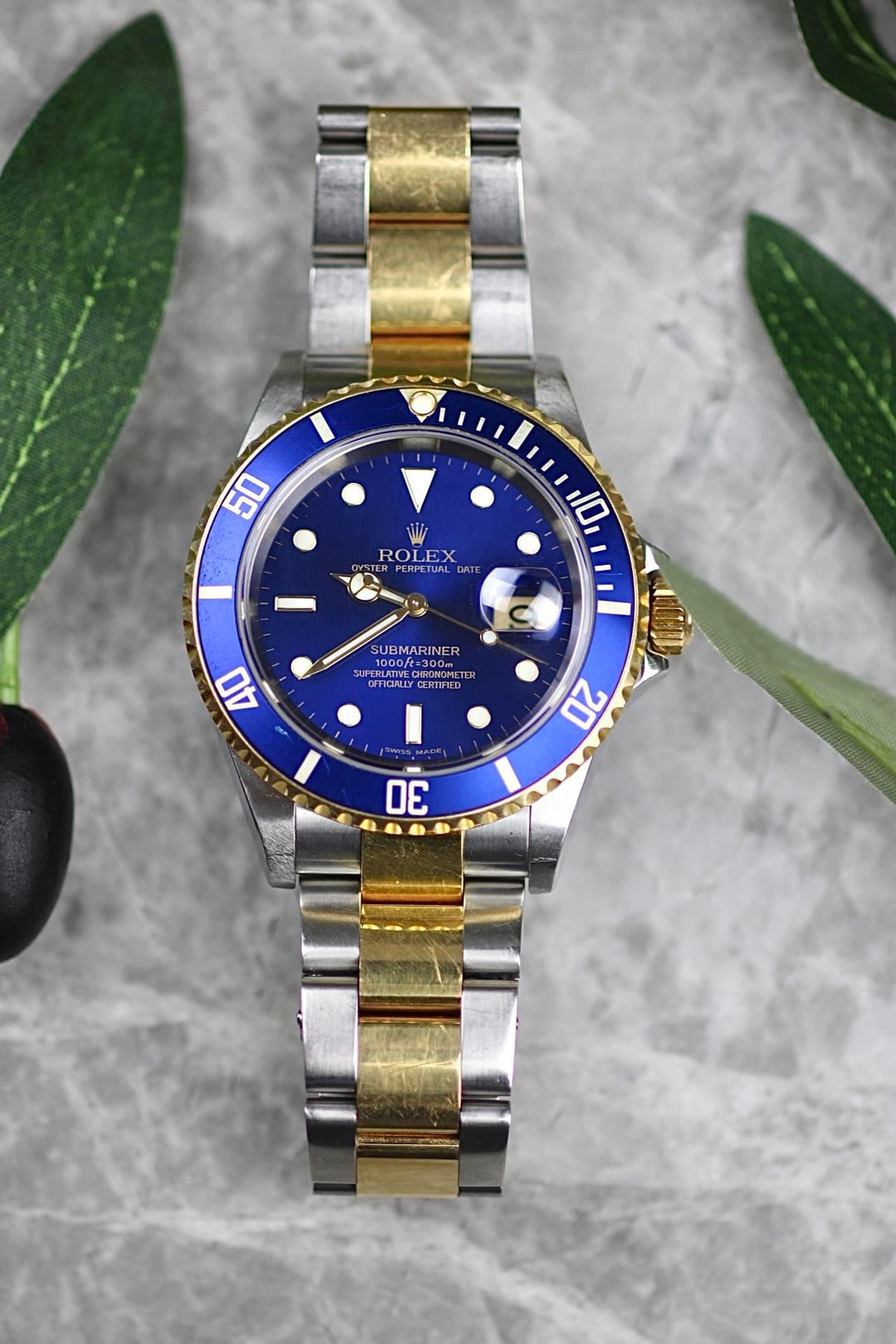| Rolex Submariner 16613 Watch Two Tone 18k Gold-Blue Dial-Blue Insert-Box & Paper precioustimepieceandco (866) |