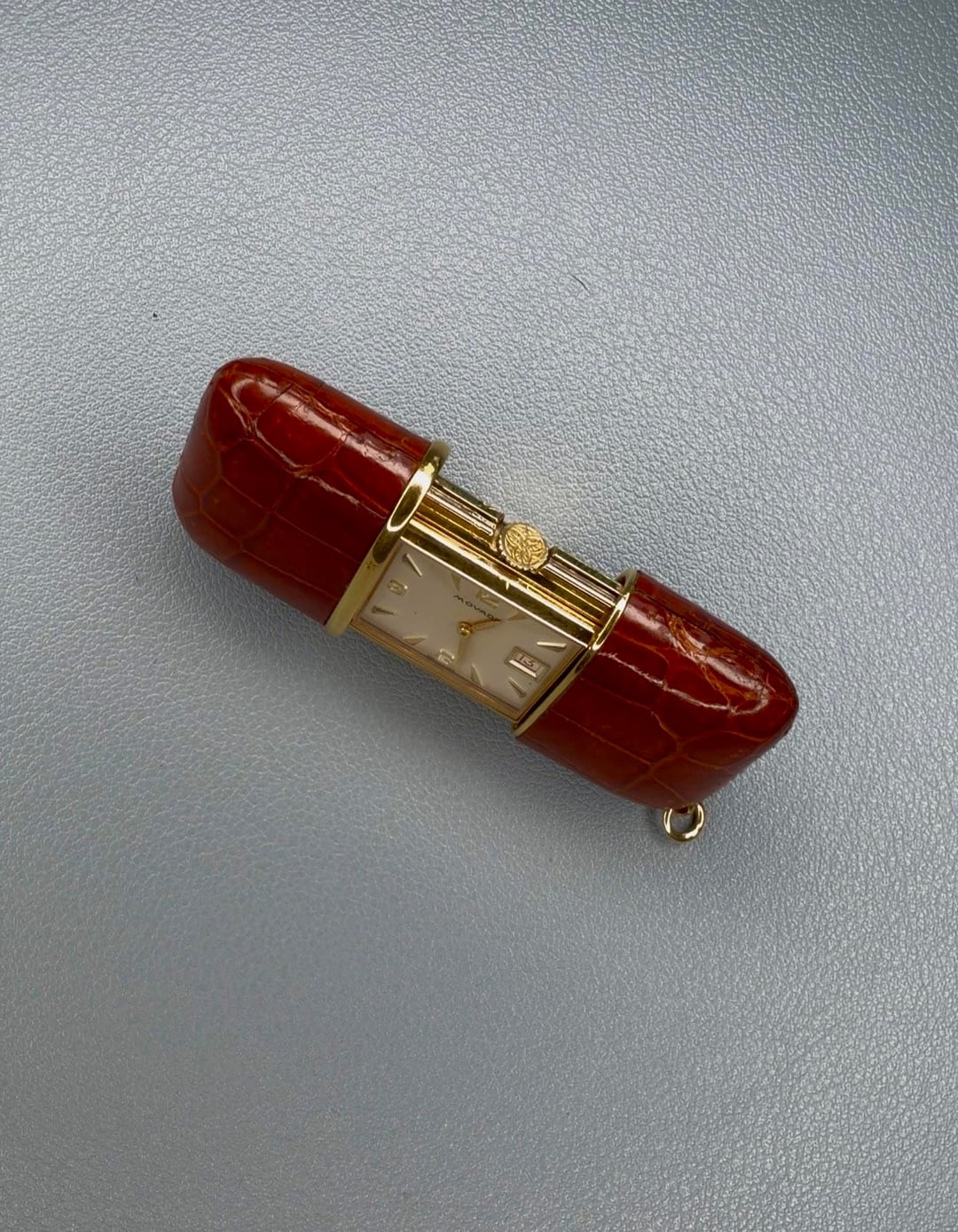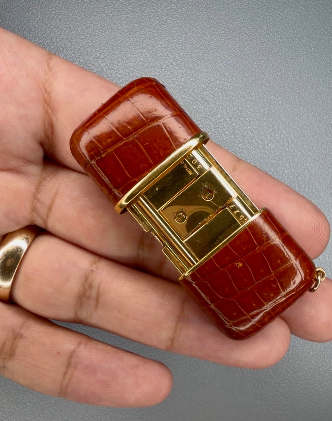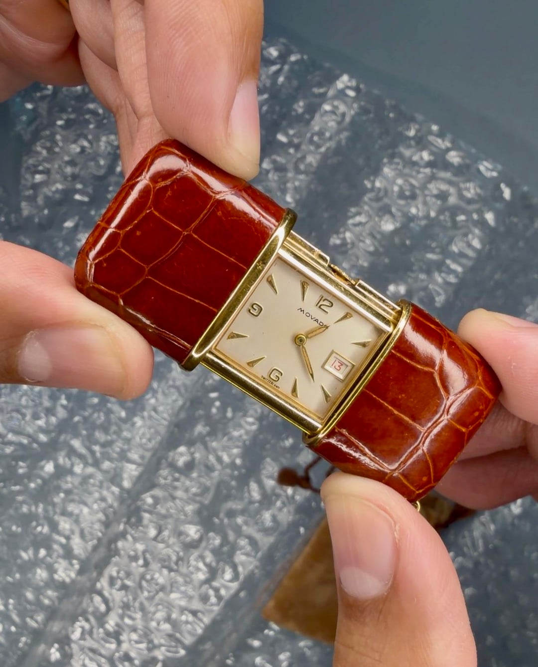 Vintage Movado Ermeto -Details: RARE vintage travel clock from the 1940’s. Needs to be serviced, ticks but doesn’t keep the time or date. Gold plated steel case, wrapped in brown crocodile leather, leather is in amazing condition given its age! Simple time and date function. To wind this gem, you open and close the case a few times or use the crown. This is a project piece, hence the low asking (Fully serviced/functioning examples range from $700 - $2,000). Feel free to watch my TikTok review linked below to learn more about this piece! -$299 USD -Includes shipping (US). I accept Venmo, Zelle, CashApp, and PayPal (+4% if using G&S) -Movement: Manual winding -TikTok Review: https://www.tiktok.com/t/ZTM5Wjqe6/ -Timestamp: https://imgur.com/a/cmVeS0b -Location: Downtown Los Angeles -IG: @ColeccionDeLosSantos -TikTok: Chris.DeLosSantos