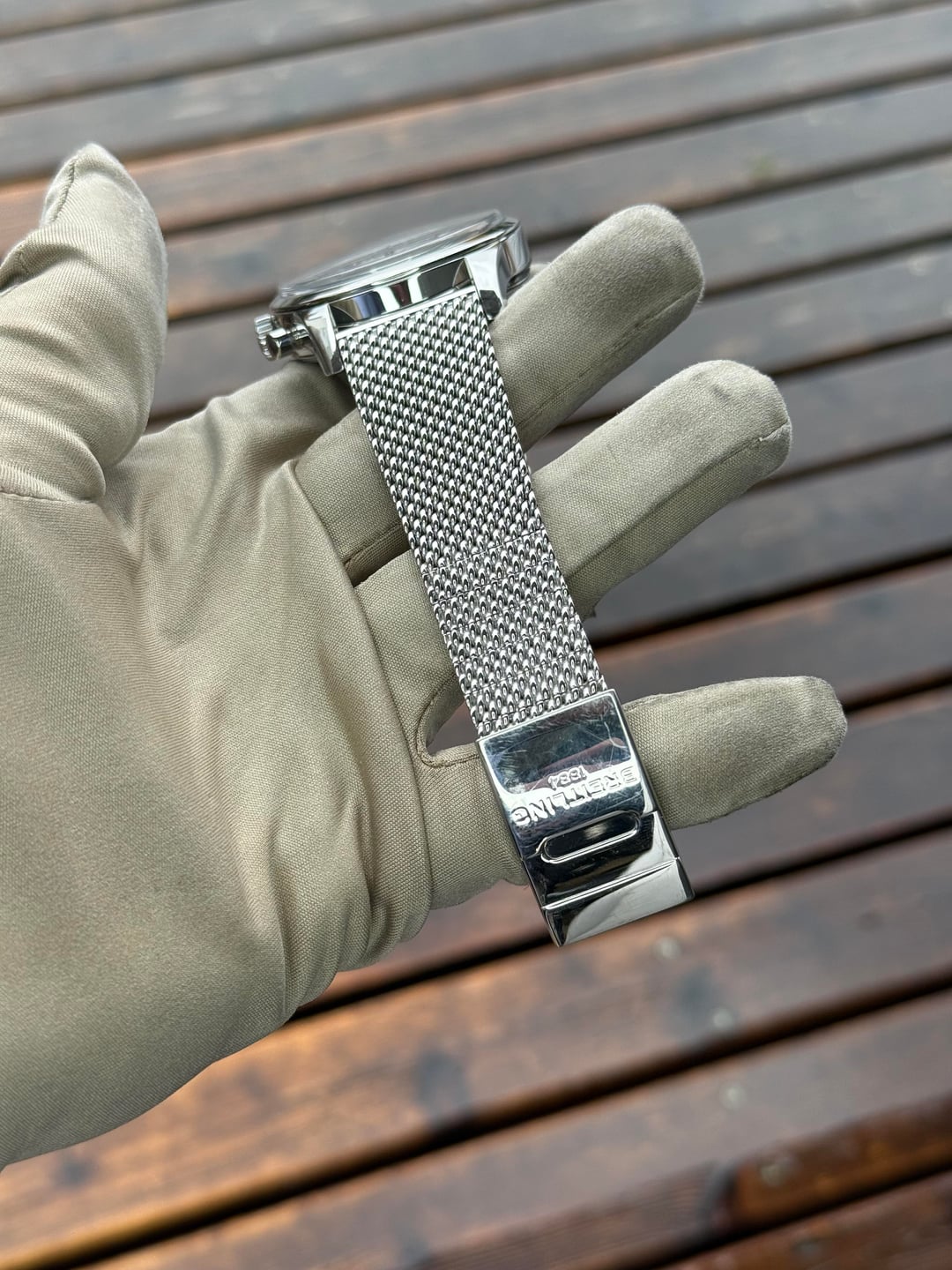 Model: Transocean Chronograph Unitime Ref. AB051 Case Material: Stainless Steel Case Dimensions: 46mm Bezel: Stainless Steel Smooth Bezel Dial: Black Dial with Rotating World Time Band Material: Original Breitling Steel Mesh Bracelet Max Wrist Size: 8 in. Movement: Automatic, Mechanical Condition: Watch is in nice preowned condition with very light scratches on the case, bezel and bracelet Accessories: Comes with Box, Warranty Card & Manual Original Purchase Date: March 2013 MSRP: $11,000 Price: $3,350 shipped! Bank wire price. WA residents subject to sales tax Email: [email protected]