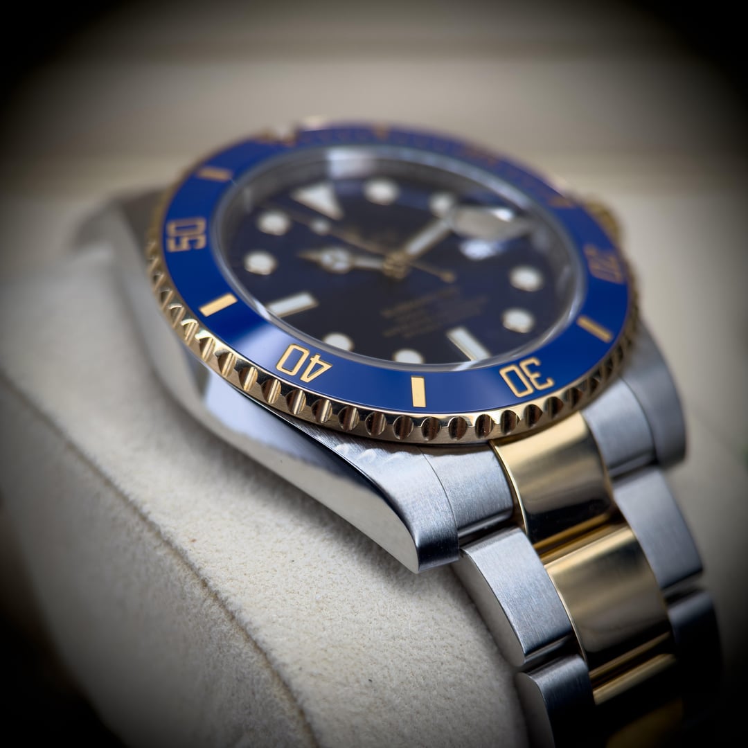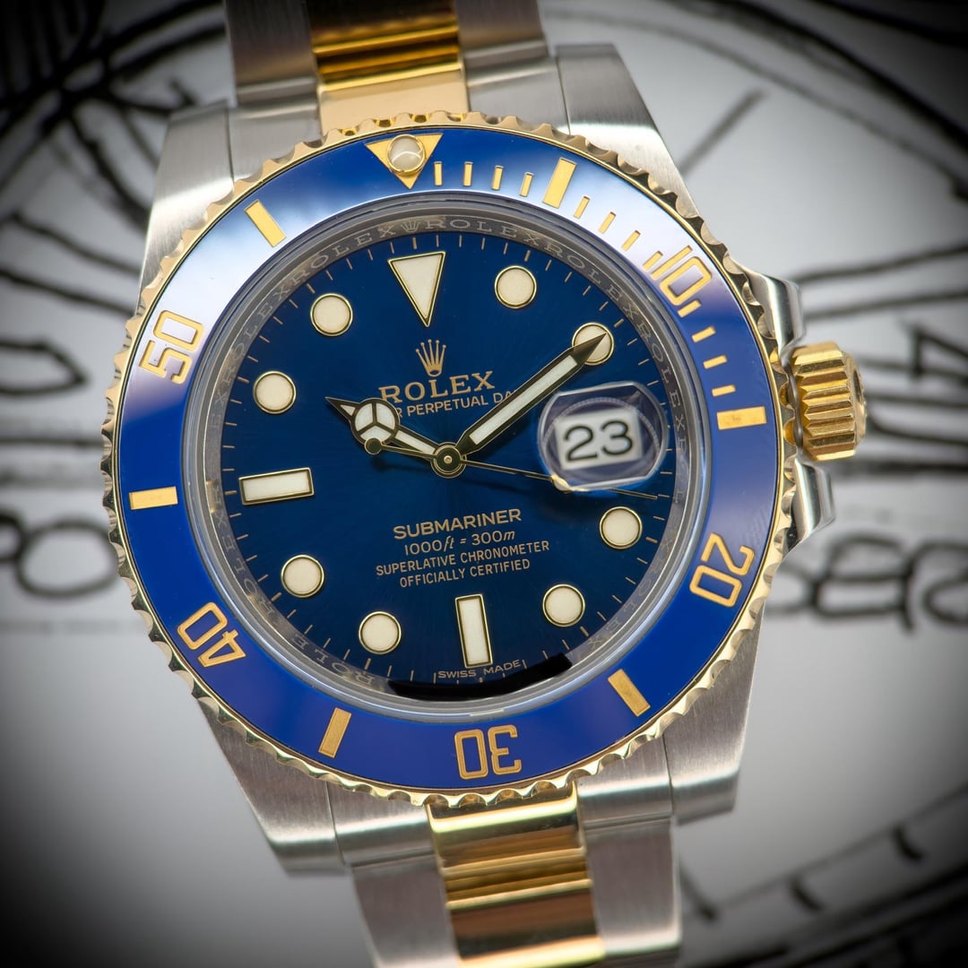 Available now is the iconic Rolex Submariner Date Bluesy! Arguably the most famous “two-tone” ever created. Featuring a blue sunburst dial and ceramic bezel, with gold contrasted throughout the bezel, crown, markers, and center links! This remains one of the most sought after Submariners today! It comes as a complete set and is running and functioning perfectly! Timestamp: https://imgur.com/a/yu8h10Y Price: $14,250 shipped Reference: 116613LB Model: Submariner Date “Bluesy” Year: 2016 Size: 40mm Scope of delivery: Complete set which includes outer box, inner box, card/papers, warranty booklet, user manual, leather card holder, white tag, green tag and bezel protector. Condition: This watch is in excellent preowned condition with very little signs of wear throughout. There are no deep scratches, dents, or chips throughout. Very minor hairlines mainly on the clasp and bracelet when angled in certain light. Crystal and bezel are 100%. Please refer to our photos as they are accurate and are taken with a professional lens to showcase the true condition of the watch. Please excuse any dust the lens picks up. I am an independent dealer located in Phoenix, AZ. I have plenty of successful deals done here and other places and am happy to answer any questions you have or setup a FT to show you the watch. Check me out on IG: state48luxe and google business State 48 Luxe (110+ 5 star reviews!) or check out my website in my profile! Trades always considered - Thanks for looking!