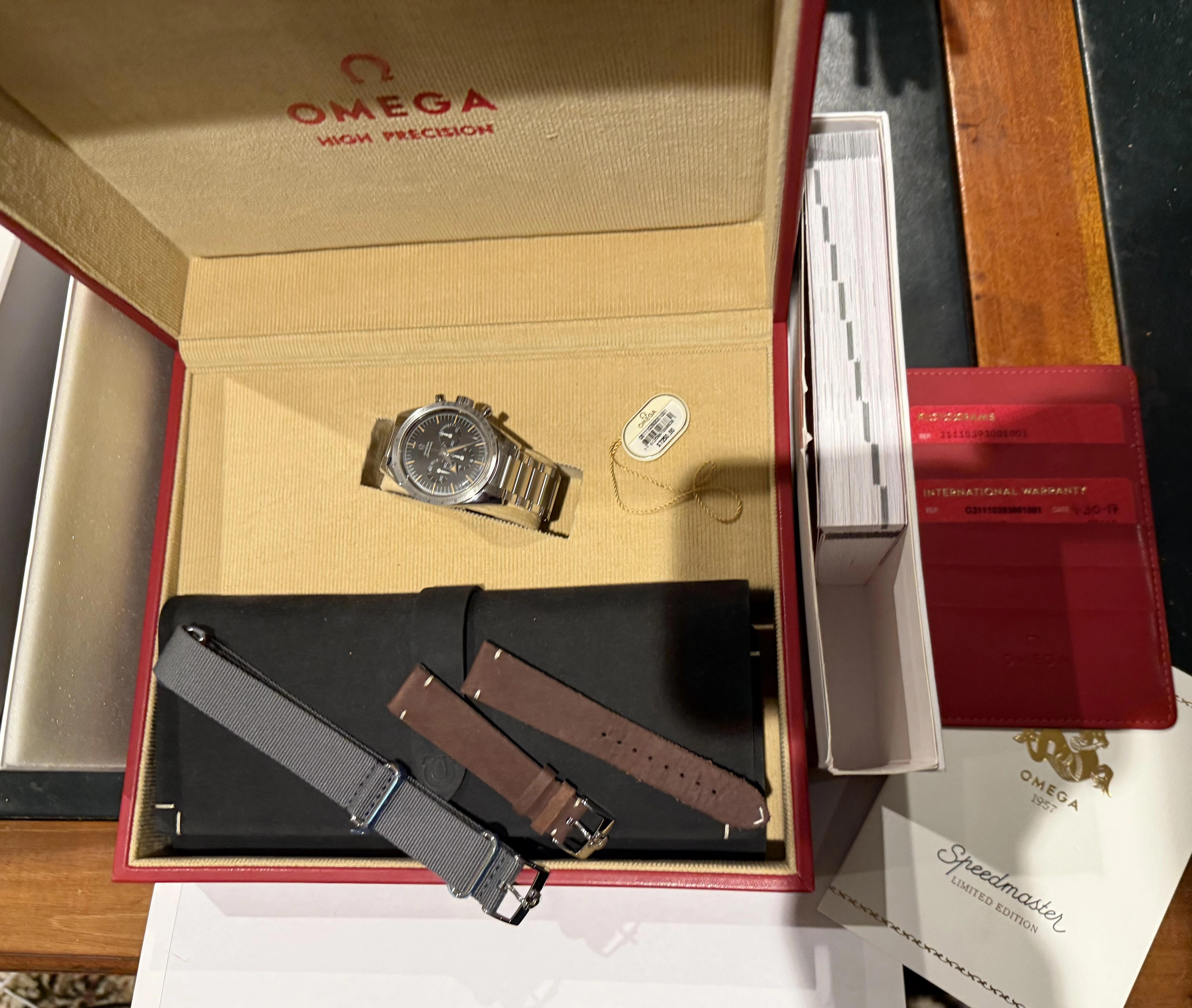 For sale is my Speedster 60th Trilogy, which I acquired in a swap on here a couple of years ago. It's a full set, cards, unworn straps (nato and leather), and I'll throw in a nice NOSTIME quick release strap too.The watch itself is in great condition, just the usual few light marks/scratches but nothing serious, case is unpolished.