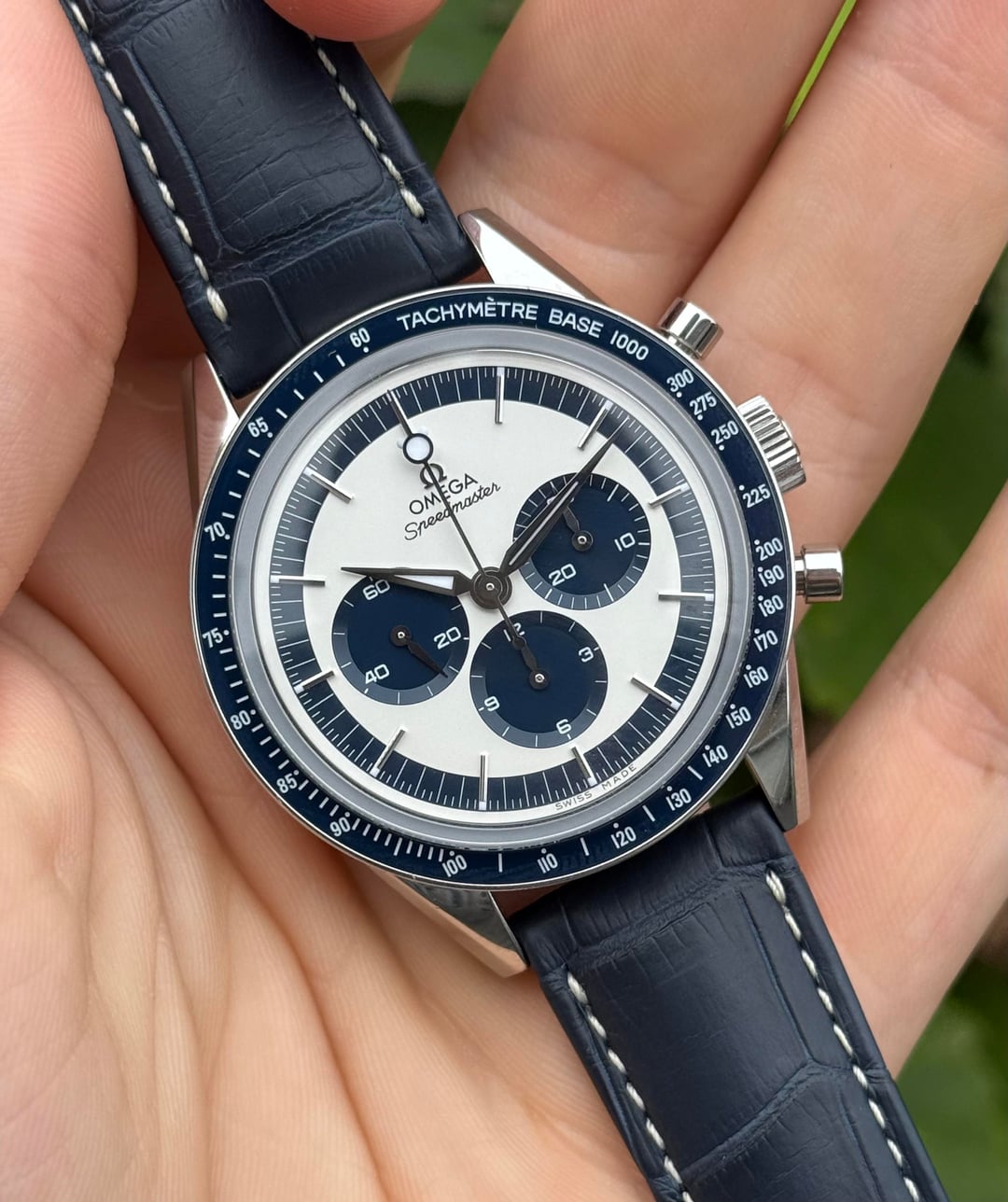 Omega Speedmaster Anniversary Chronograph 'Blue Panda' CK2998 // CK 2998. 40mm stainless steel case, opaline silver dial with blue subdials, on factory blue omega leather strap with buckle. Manual winding OMEGA calibre 1861. Reference 311.33.40.30.02.001. One of the most striking modern Speedmasters released by Omega. Features "lollipop" chronograph seconds hand that is reminiscent of the original CK2998 model first released in 1959. A modern classic. Complete set with outer box, inner box, instruction manual, card sleeve, international warranty card and pictograms card. Also includes the card from WatchMax Extended warranty. Watch and strap are in amazing condition as shown in photos! Watch has barely been worn, and everything on this piece functions well as it should. Thanks for looking! Asking for $7,295 Shipped or best offer to the CONUS! This is one of the lowest prices i’ve seen online for this mode, Send me cash offers if you have them. Local pickup available in Metro Detroit area. Zelle and bank wire preferred. Paypal f&f available for clients with strong transaction history here on the sub. Please message me with any questions you may have!