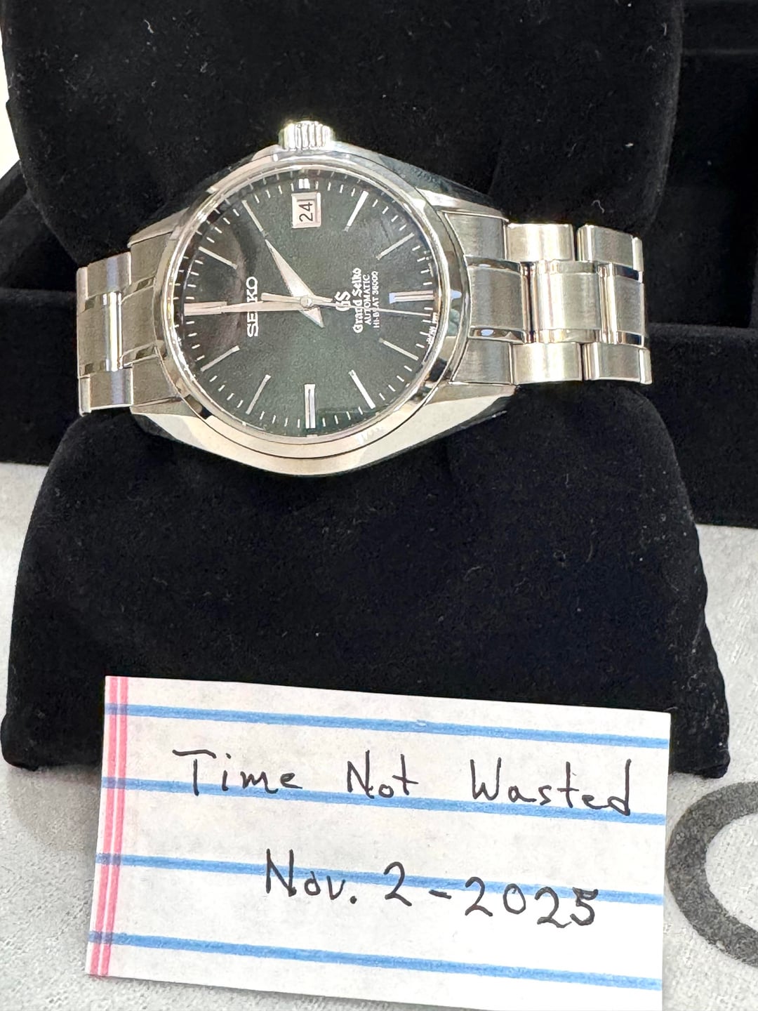 For sale from my personal collection is a very special timepiece only sold in Ginza Japan and limited to 200 pieces. Additionally this green beauty was calibrated to a special tolerance of +5/-1 seconds a day. Also has blued screws versus regular protection models. From Fratello “The SBGH003 is part of the first series of watches powered by the hi-beat Grand Seiko Caliber 9S85. Introduced in 2009, it was Grand Seiko’s first new hi-beat movement in four decades. This series of three watches came with a white dial (SBGH001), a black dial (SBGH007), and the peacock green dial of this SBGH003. This model was a limited-edition release of 200 pieces sold exclusively through the brand’s Ginza boutique. The watch features the iconic 44GS-style case that looks amazing and comes with the familiar Grand Seiko bracelet. The finishing of both the case and the bracelet is up to the highest standards in the industry with a mix of brushed satin and Zaratsu-polished parts.” Specs are as follows: * Case width: 40mm (w/o crown) * Lug to lug length: 46mm * Lug spacing: 20mm * Thickness: 12.1mm * Pre-owned and excellent condition * Movement: High-Beat 9S85 * WR rating: 100 meters * No trades, Only selling * Full Kit..box, papers, etc * Free Shipping via USPS Priority within CONUS Priced to SELL: $5,990 shipped Payment: Venmo or Zelle (G&S for well established accounts, buyer pays additional 3.5% Buy with confidence. Currently, 159 positive transactions on Reddit and counting. Happy to FaceTime with GS in hand.