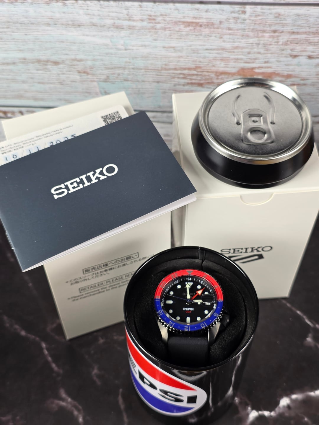 📢 Available for Sale! - 🆕 New Unworn —Seiko Pepsi GMT Limited Edition Full Kit with signed warranty card Seiko Pepsi SSK047 GMT — $5️⃣2️⃣5️⃣ Under MSRP! --- 📦 Add$ for label - Ships from NJ (CONUS only) 💳 Zelle preferred, PP & Venmo FF accepted 📸 More pics & refs on request NJ buyers are subject to sales tax.