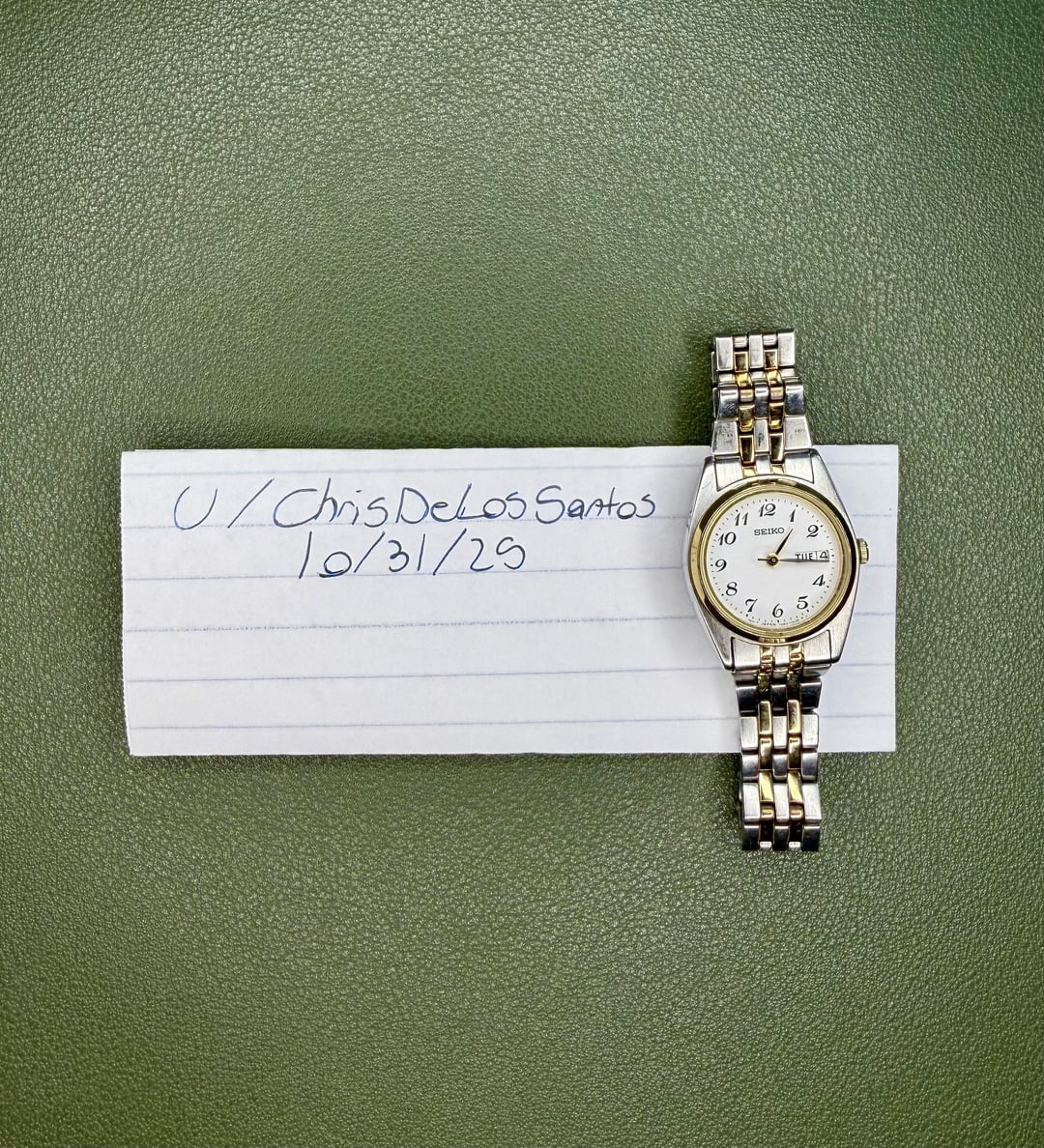 Ladies Seiko 7N83 Two-Tone -Details: A beautiful ladies two-tone Say-ko in good condition! See photos for reference. This piece is excellent for any lady looking to up their style or make a statement! Makes a great gift for a special lady in your life too! New battery installed. -$99 shipped -Case Size: 23mm -Movement: Quartz -Timestamp: https://imgur.com/a/Oq7V459 -Location: Downtown Los Angeles -I accept Venmo, CashApp, Zelle, and PayPal (+4% if using G&S) -IG: ColeccionDeLosSantos -TikTok: Chris.DeLosSantos