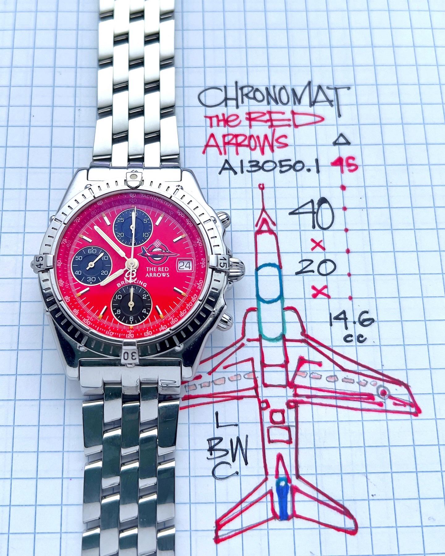 Breitling Chronomat The Red Arrows A13050.1 Limited Edition The Chronomat line is both classic and iconic. Here we have it in a vibrant “The Red Ones” special edition which is a tribute to a 30 year partnership with the Royal Air Force. The Valjoux ETA 7750 automatic movement was serviced and pressure tested in October of 2025 and running like an ace. Bracelet appears fully linked but pm or email if your wrist is 7.75 and bigger to double check Timestamp ix Timegrapher and videos: https://drive.google.com/drive/folders/1KPBmi3HJrfrfHNrIqxIvmtukqgg_d7ST * cool aftermarket pelican style case and independent service papers from October 2025. It was pressure tested but we do not guarantee that it is waterproof * video is the best way to view the watch if in-person test drive is not available. Due to the different characteristic of the cameras and gadgets used, the color of the watch you purchase may not be the same as shown on this website or on our Instagram. * will consider trades that make sense but please consider time, shipping, and trade value—not market. * local special: can possibly accommodate at ButterScotch in Downtown Long Beach by appointment * All sales final unless the watch is misrepresented or lost in transit (always fully insured) * Link to [feedback here](https://www.reddit.com/r/WatchExchangeFeedback/search?q=soycowboy&restrict_sr=1&sort=new) & [watchcharts here](https://watchcharts.com/repcheck/user/soycowboy?source=reddit&type=feedback) * Asking a *negotiable* **$3150** via bank wire, Zelle, venmo, or possibly Appleay with super strong references or if I know you. Price includes fully insured Fedex shipping in the USA— hand delivery in Long Beach with drinks or coffee on me ;). Cheers, Stephen