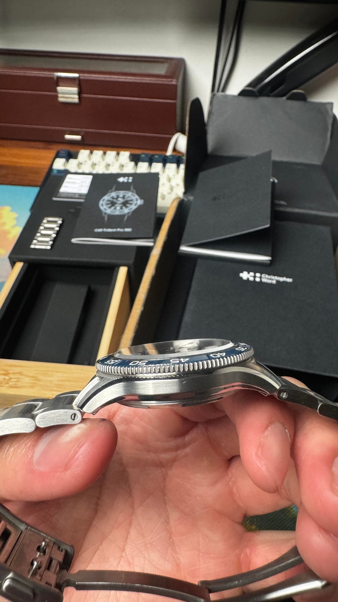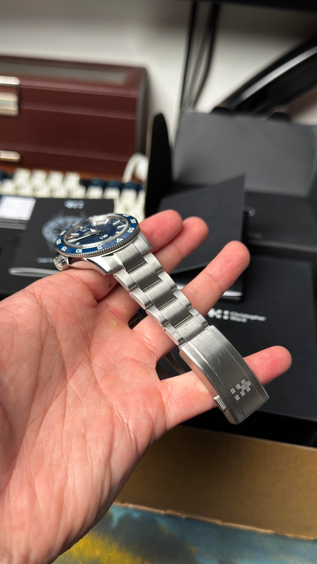\[WTS\] Christopher Ward C60 Trident Blue 38mm Diameter on Bader bracelet - Full Kit Condition - Excellent condition on the watch head with only a very tiny blemish at the 9 position. Light desk diving scuffs on the bracelet. Nothing deep on the bracelet at all. Ceramic bezel and crystal is pristine. Keeps time within spec of the SW200. Includes - Full kit with original box, warranty card dated 02/25, all links reinstalled Images - [https://imgur.com/a/eI1xtw7](https://imgur.com/a/eI1xtw7) Timestamp - [https://imgur.com/701Ekhf](https://imgur.com/701Ekhf) Price - $875 Shipped within CONUS. Payment via PayPal friends and family, Zelle, or Venmo.
