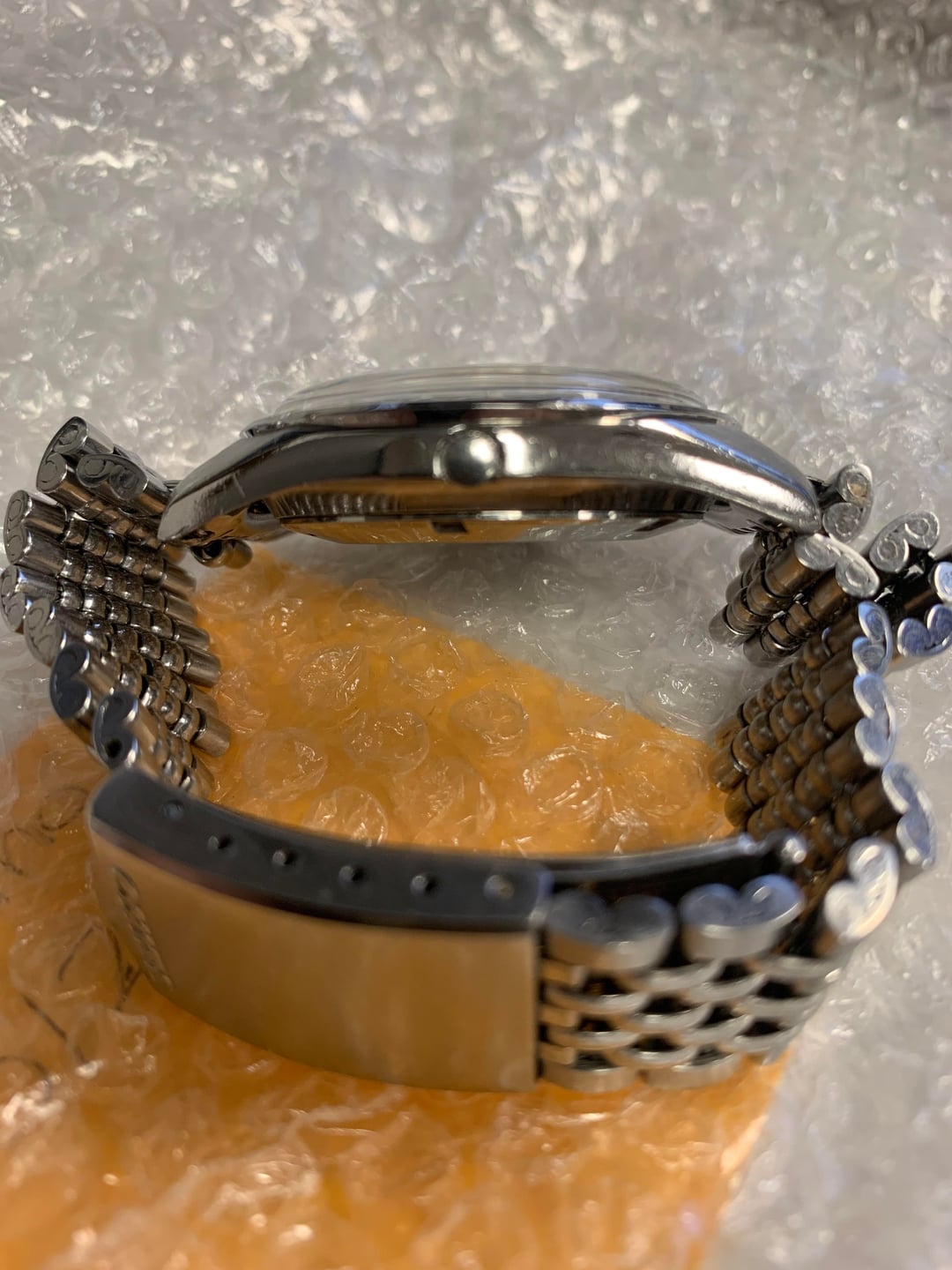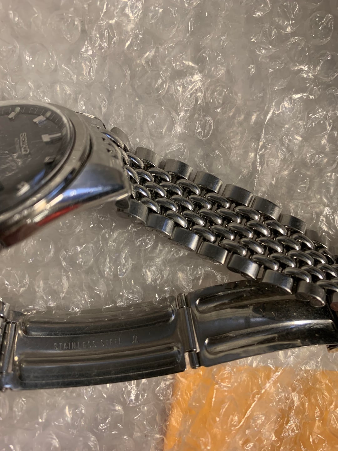 Up for sale is my lovely Seiko 7625-8233. For a 60s Seiko, it's in incredible condition. The dial is a beautiful sunburst grey with crosshairs in a very wearable 38mm diameter case. The case is in great shape, and the movement keeps good time (the previous owner indicated it had been serviced in the last year or two, but I haven't confirmed that). Included is the original Seiko beads of rice bracelet. Can't say enough good things about this watch, but it doesn't get much wrist time these days. * $250 Shipped CONUS, I accept Venmo, Zelle, PayPal FF or +3.5% for G&S Fee DetailsDIAL: Seiko-signed steel-grey starburst dial. Matching handset, to include unique "box" seconds hand. CASE: Stainless-steel case measures 38mm x 45.5mm, with matching waterproof-signed caseback; caseback engravings are crisp and legible. CRYSTAL: Domed acrylic crystal, no scratches or cracks. BAND: This 7625 comes on the original Seiko bracelet. MOVEMENT: 17-jewel 7625D automatic movement, manufactured in April 1968, which beats at 18,000 bph. CROWN: Stainless-steel crown.