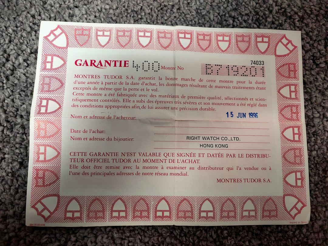 Up for sale is a Tudor Prince Oysterdate 74033 34mm watch SUPER FULL SET. Original boxes and papers, a service record, and a Tudor booklet in the 1990s are included. It was produced in the 1990s with the Rolex Crown and Rolex Case Back. **Price: $1499. Payment via PayPal or Wise is preferred.** **Watch is in Chongqing (known as the Cyberpunk City), China.** **I will pay the customs duties or tariffs for buyers located in United States.** **Watches will be shipped via FedEx, which delivers to your doorstep in just four days.** Worldwide shipping and I am willing to ship this watch anywhere with buyers paying for the shipping. If you really love this watch and pay fast, I will offer free shipping! **The watch is 100% authenticity guaranteed**. It is fully functional and running at -5 seconds per day. Feel free to ask for any custom timestamps or videos, I am happy to send them. Please don't hesitate to ask me any questions, thank you! **I am able to source all kinds of Tudors, please feel free to PM me!**