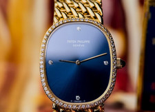| Patek Philippe Golden Ellipse Blue Sigma Dial 18k Yellow Gold 1970’s Model 3548 diamondmarinellc (3679) |