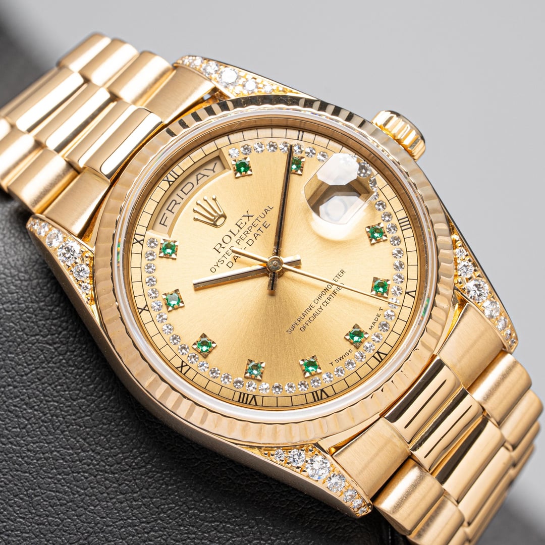 [WTS] Rolex Day Date 18338 Factory Diamond Dial and Lugs Emerald String Dial
