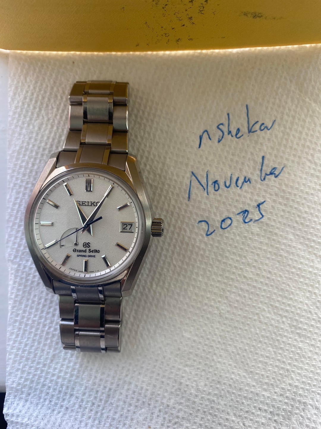 Selling my **Grand Seiko SBGA125 Blizzard**, a limited-edition Heritage Collection Spring Drive model. I purchased it second hand from a reputable dealer in Japan about a year ago and wore it only for a few weeks total. It has spent the rest of the time stored safely. The watch is in **good condition** with only very light signs of wear from minimal use. Functionally perfect — smooth Spring Drive sweep, strong power reserve, no issues. **What’s Included (Full Set):** * Watch * Original Grand Seiko box * Papers/booklets * Full bracelet + all links **Specs:** * Model: **Grand Seiko SBGA125** * Movement: 9R65 Spring Drive * Case: 40mm, titanium * Crystal: Sapphire * Power Reserve Indicator * Limited Edition **Condition:** Worn sparingly for a few weeks, no major marks or dents. **Price:** 4,250 USD including shipping to CONUS. International shipping at cost. **Location:** Los Angeles, CA Thanks for looking!