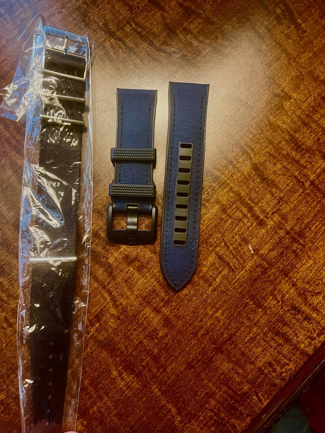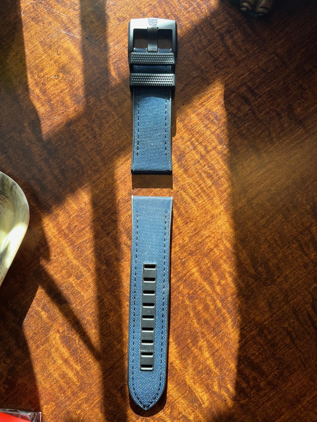 1) SYNCHRON 22mm Black Seatbelt NATO is brand NEW in package $29 2) 24mm Luminox Hybrid Rubber Strap Navy Blue $75. Used but looks good , not sure they still make these but here is the Luminox link. # [Rubber Strap, 24 mm, FPX.2404.24B.K](https://luminox.com/products/blue-nylon-over-black-rubber-strap-with-black-stitching) Description For 1000 series More Blue rubber Black CARBONOX buckle 24 mm Can fit any other watch with 24 mm lug width This item requires a strap changing tool [luminox.com](https://luminox.com/) Paypal F&F no Fee or G&S add 4% [time stamp](https://imgur.com/a/Q71P69z)