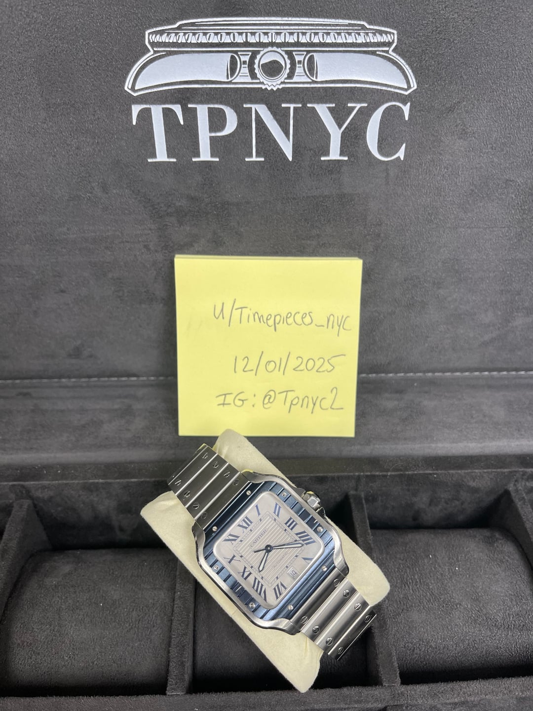 Price: $6,900 Shipped Watch: Cartier Reference Number: WSSA0047 / 4072 Comes With: Complete Set (2023) Condition / Specifics: This 40mm Large Santos is in preowned condition with scratches throughout. The crystal is clean but may contain marks on it under strong magnification. It also comes with the strap as well. As always please reach out with any questions prior to purchasing! Additional Notes: • Pictures Accurately Display Condition, So Please View All Photos • Watch Currently Runs (Service History Unknown) • FREE 2 Day Insured FedEx Shipping • NO RETURNS, All Sales Are Final! We Accept: Bank Wire Transfer, Zelle, Crypto TRADES ARE ALWAYS WELCOME !!! Additional ways to contact us: Corresponding on Reddit can be a pain sometimes. If you have further questions and need another way to connect, you can visit our website tpnyc2.com or Instagram @tpnyc2! Reddit Followers Get Free Overnight Shipping and $50 Off This Purchase! (Only Applies If You Don’t Negotiate And Buy For Full Price)